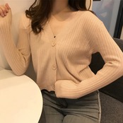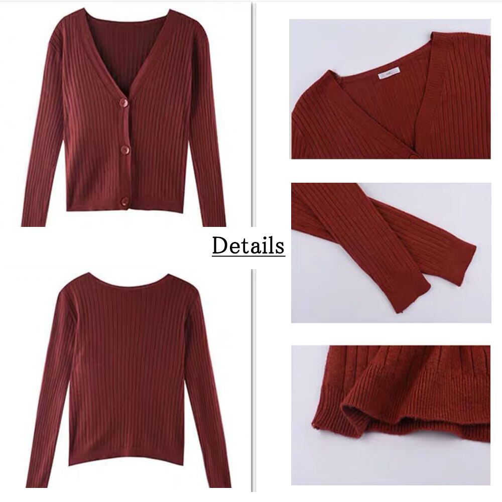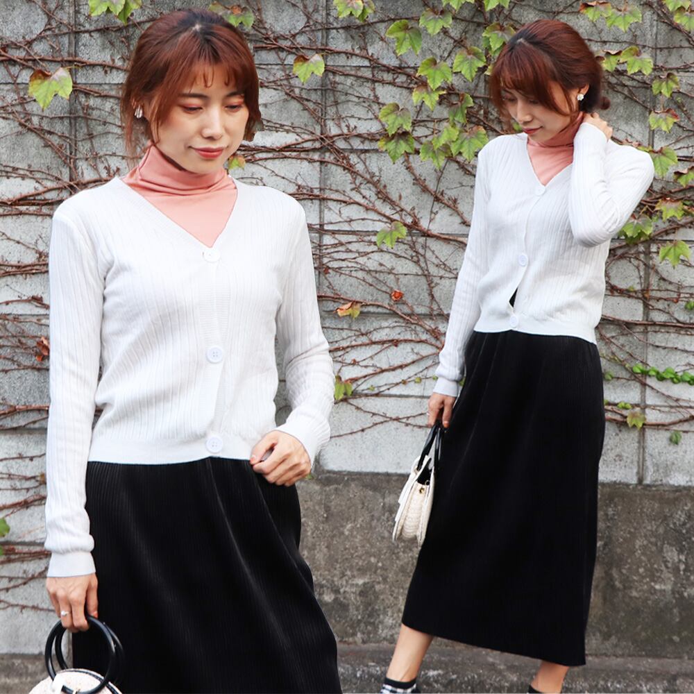 Vネックカーディガン レディース 長袖 羽織り リブ編み ショートカーディガン