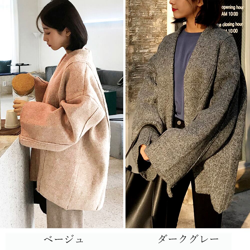 超ビッグシルエットがかわいい大人色ノーカラーカーデ