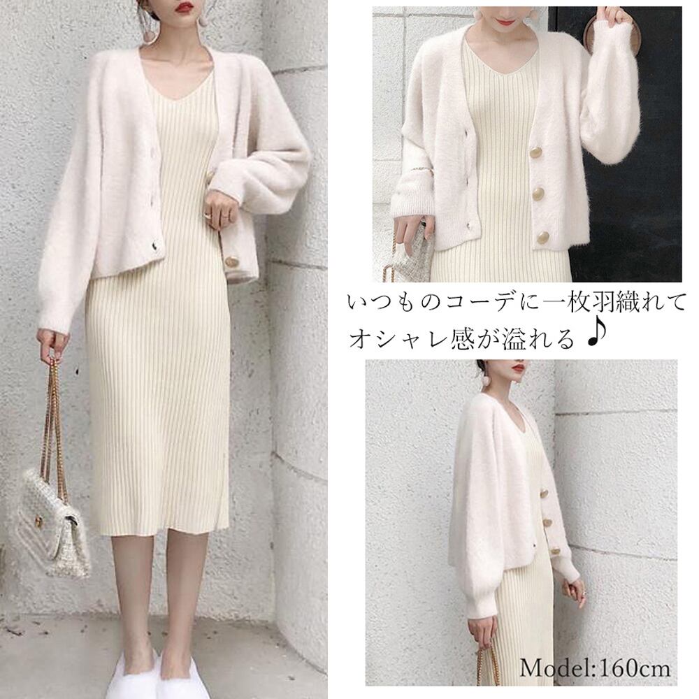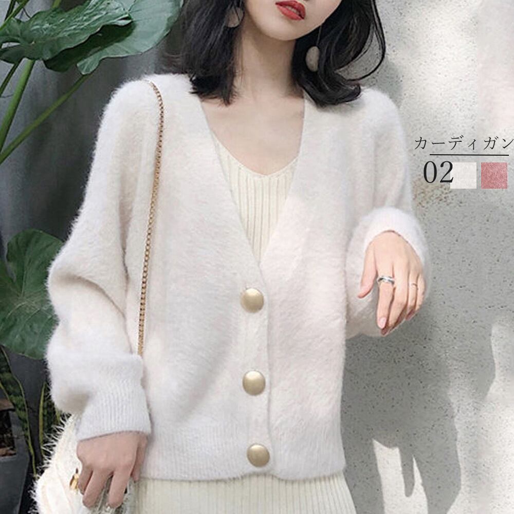 カーディガン Vネック ふわふわ ニットセーター 暖かい お洒落 前開きボタン