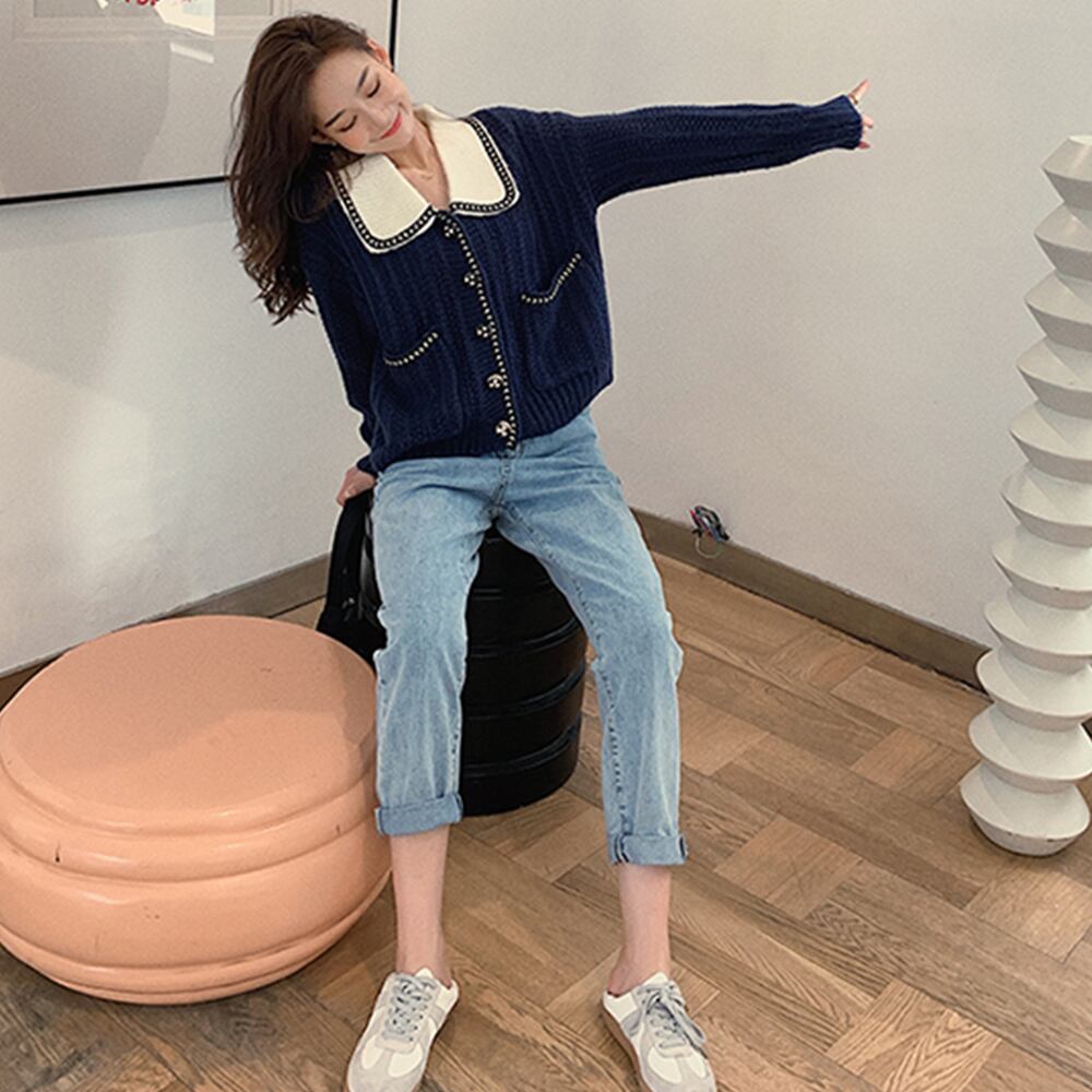 ニットカーディガン レディース 可愛い襟付き ショートカーデ 学院風 秋冬