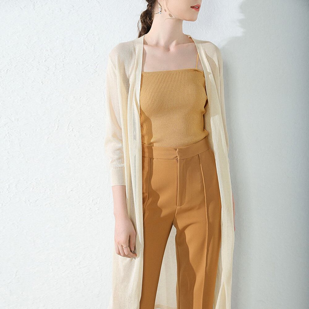 サイドスリット サマーニットアウター 冷房対策カーディガン シースルー 無地ガウン シンプル 韓国風 七分袖カーディガン 着回し アウター ロング丈 羽織り