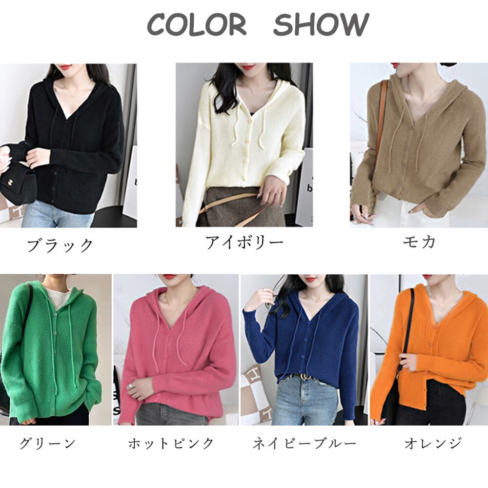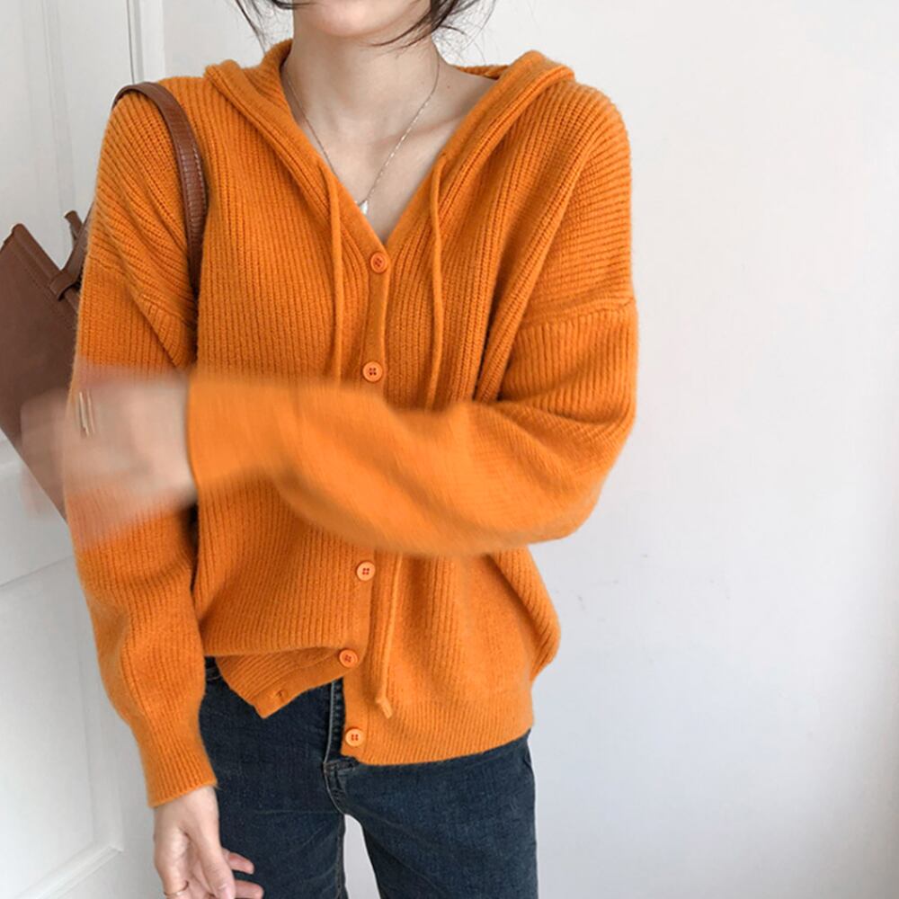 韓国 ニットカーディガン フード付き 秋