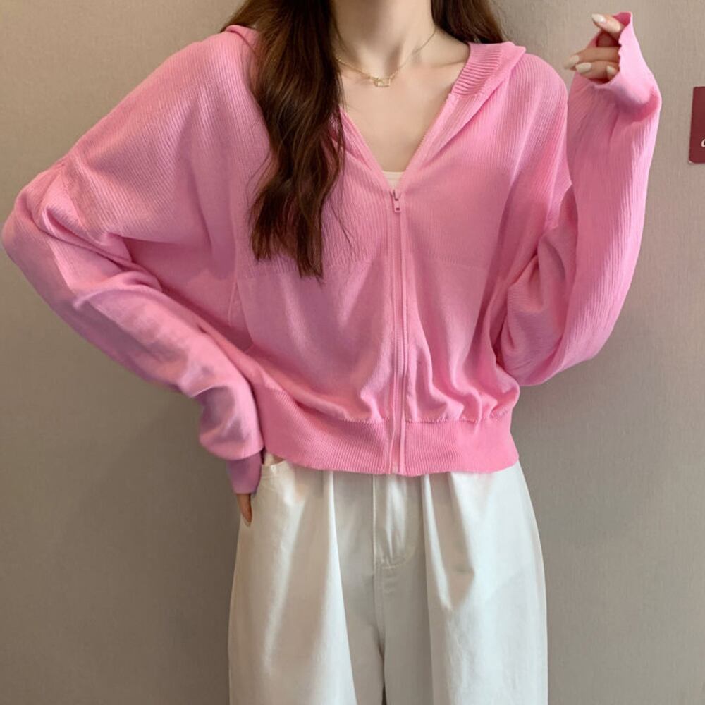 カーディガン 薄手 パーカー 透かし カーデ サマーニット 可愛い 透かし編み カーディガン