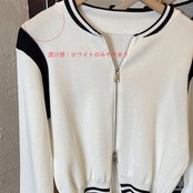 ショート丈 スタジャン クロップド丈 ブルゾン ニットアウター セーター おしゃれ 春秋冬 配色バイカラー カジュアル