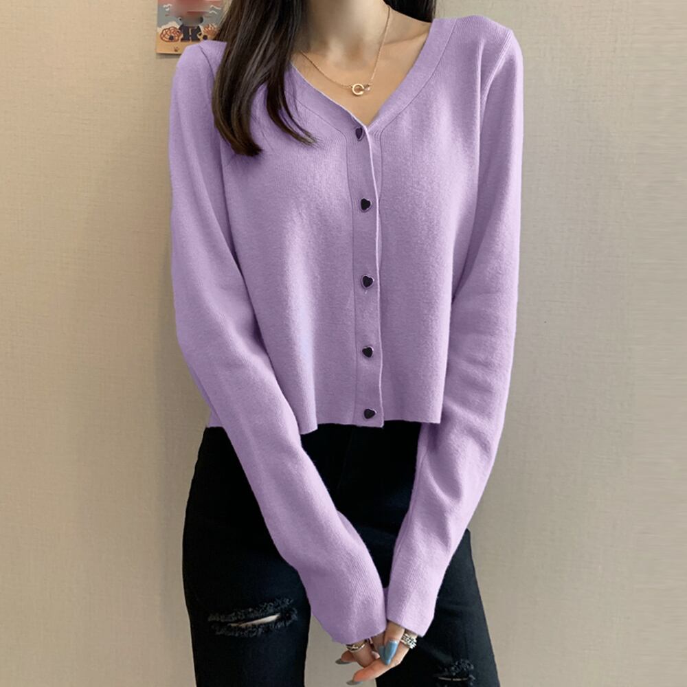 ショート丈 長袖 ニットセーター トップス 前開き 開襟 アウター オシャレ 可愛い カジュアル 春秋冬