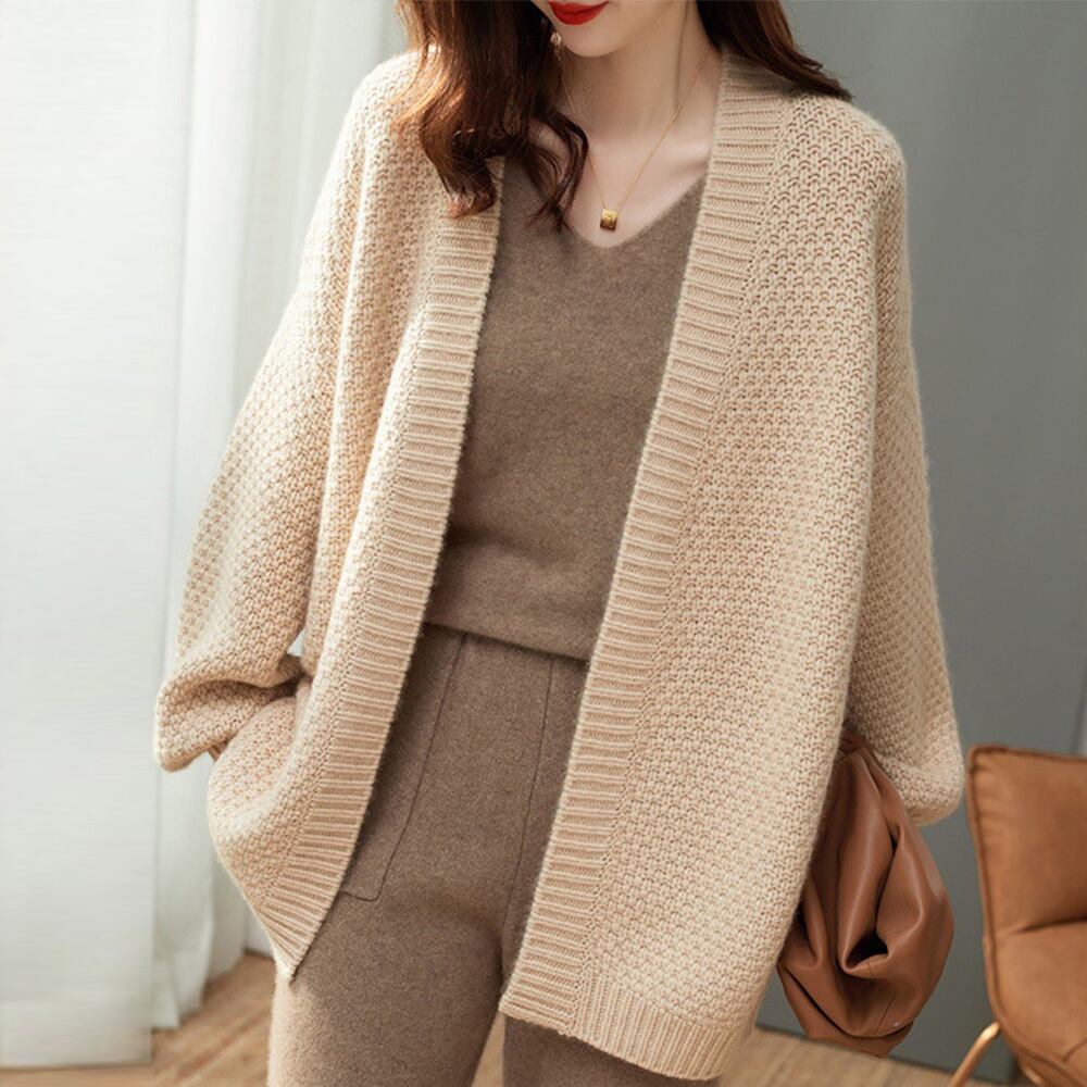 韓国風 ゆるニットトップス ドロップショルダー ニットコーディガン 無地ニットアウター カジュアルトッパーカーディガン