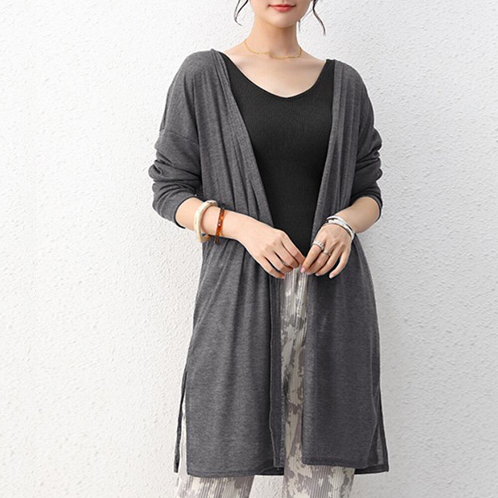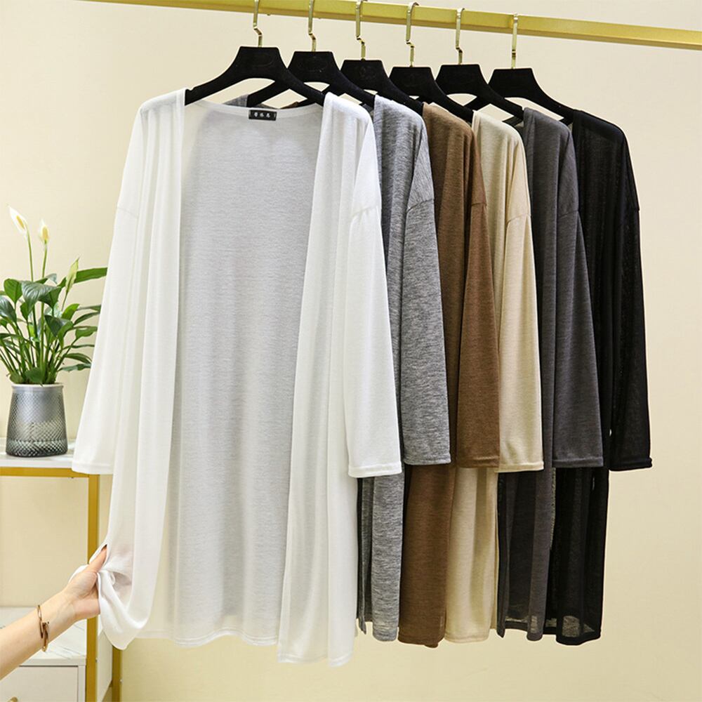 ボレロ カーディガン ミドル丈長袖カーディガン 春夏トップス アウター 羽織る ロングニットカーディ 体型カバー さらり