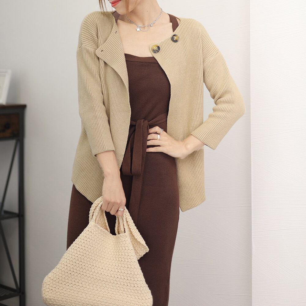 7分袖カーディガン おしゃれ ドロップショルダー ニットトップス きれいめカジュアル ニット羽織り 春秋冬アウター 上品
