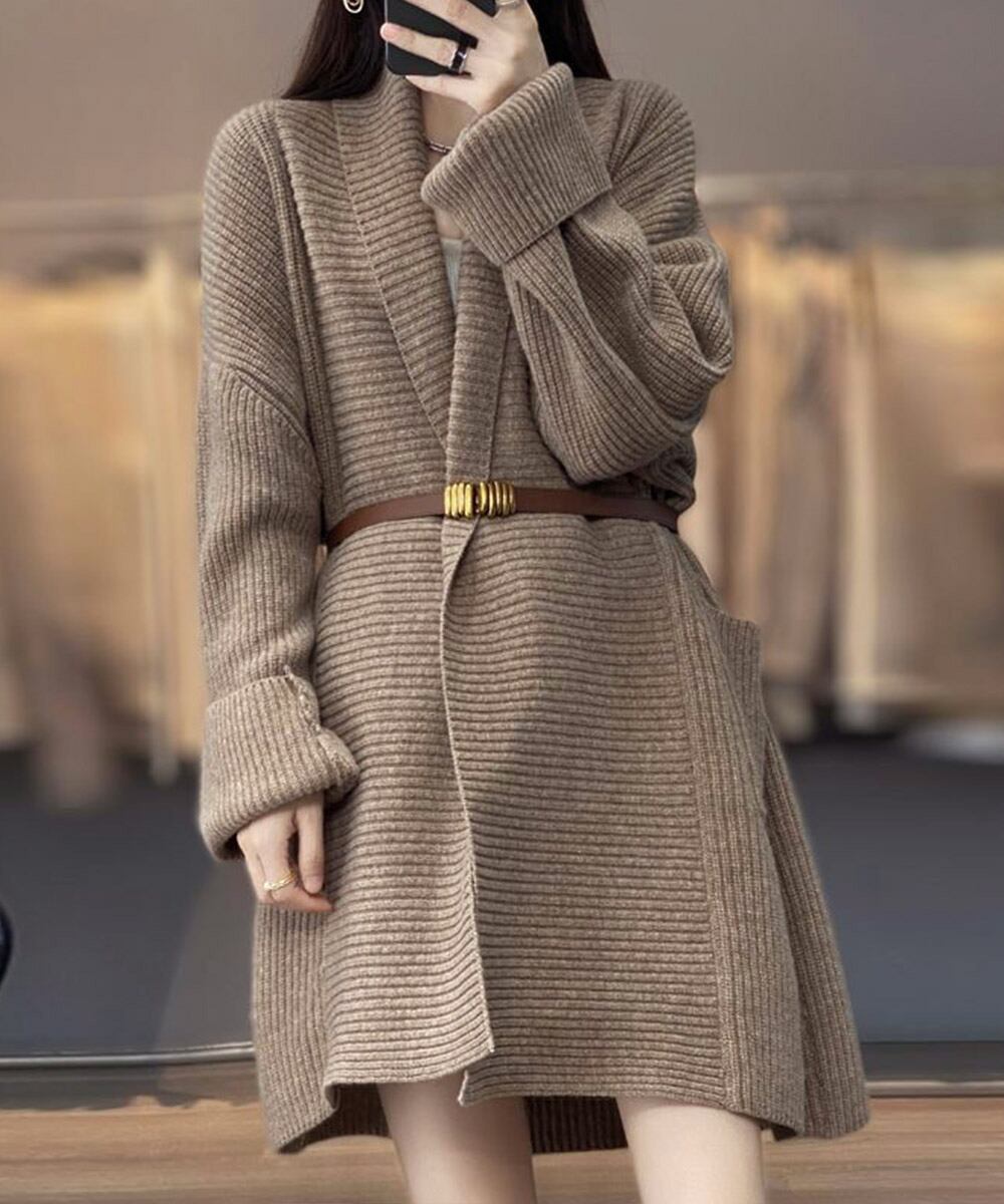 厚みのある柔らかニット生地で仕上げた、抜け感&こなれ感が溢れる韓国新作DESIGNののレディースカーディガン