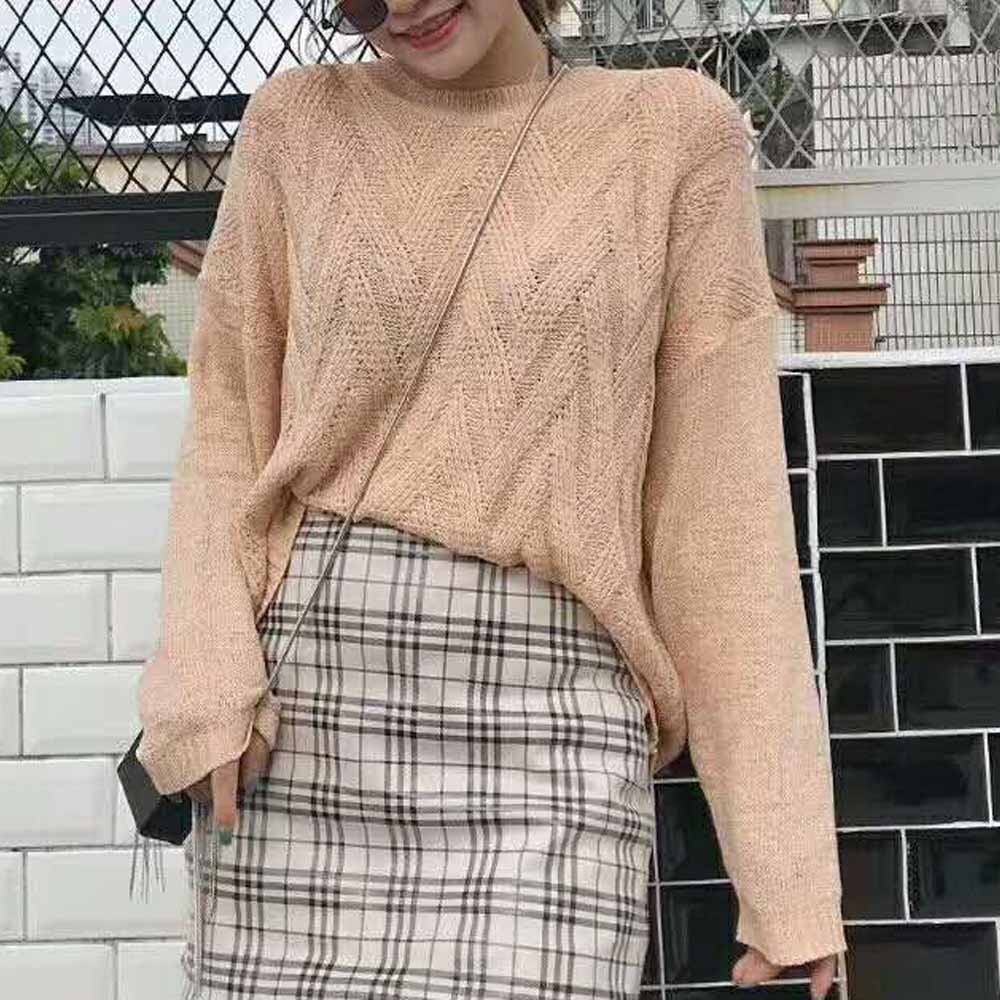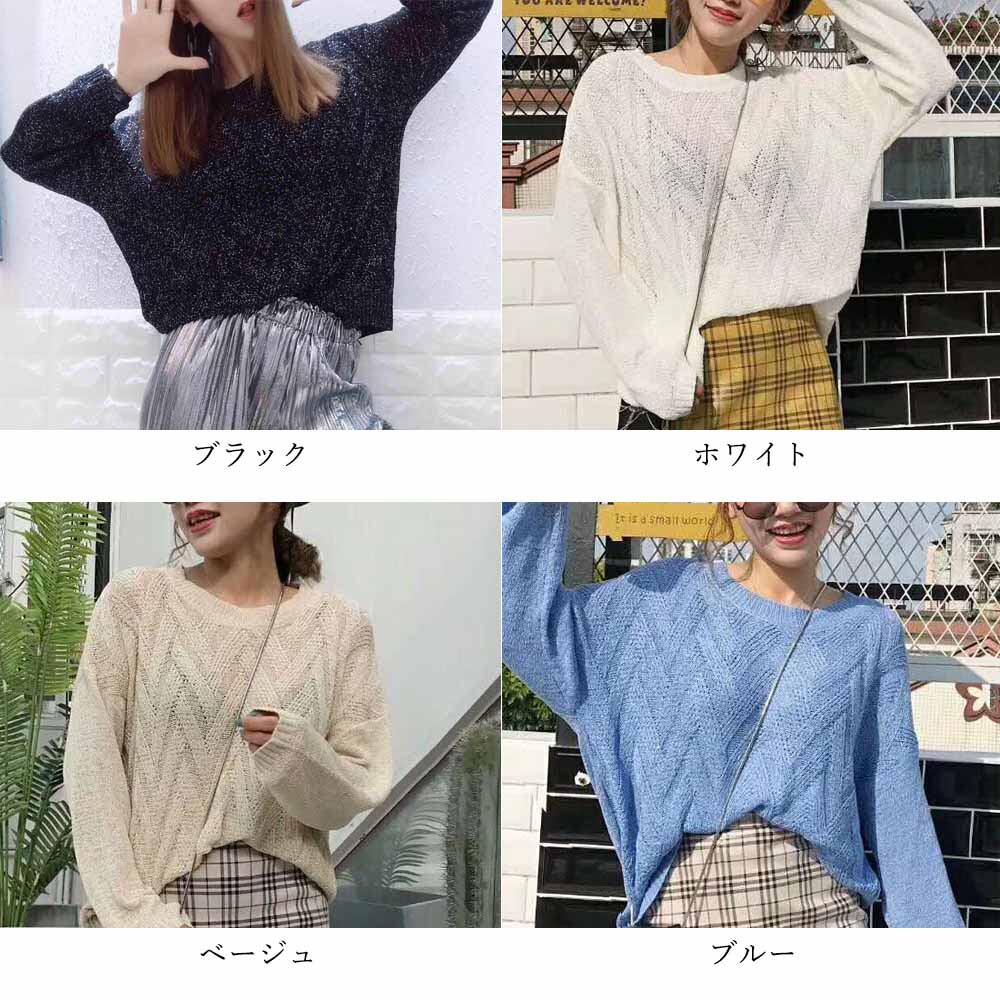 ニットトップス レディース 薄手 ゆるニットセーター 透かし編み ロング丈