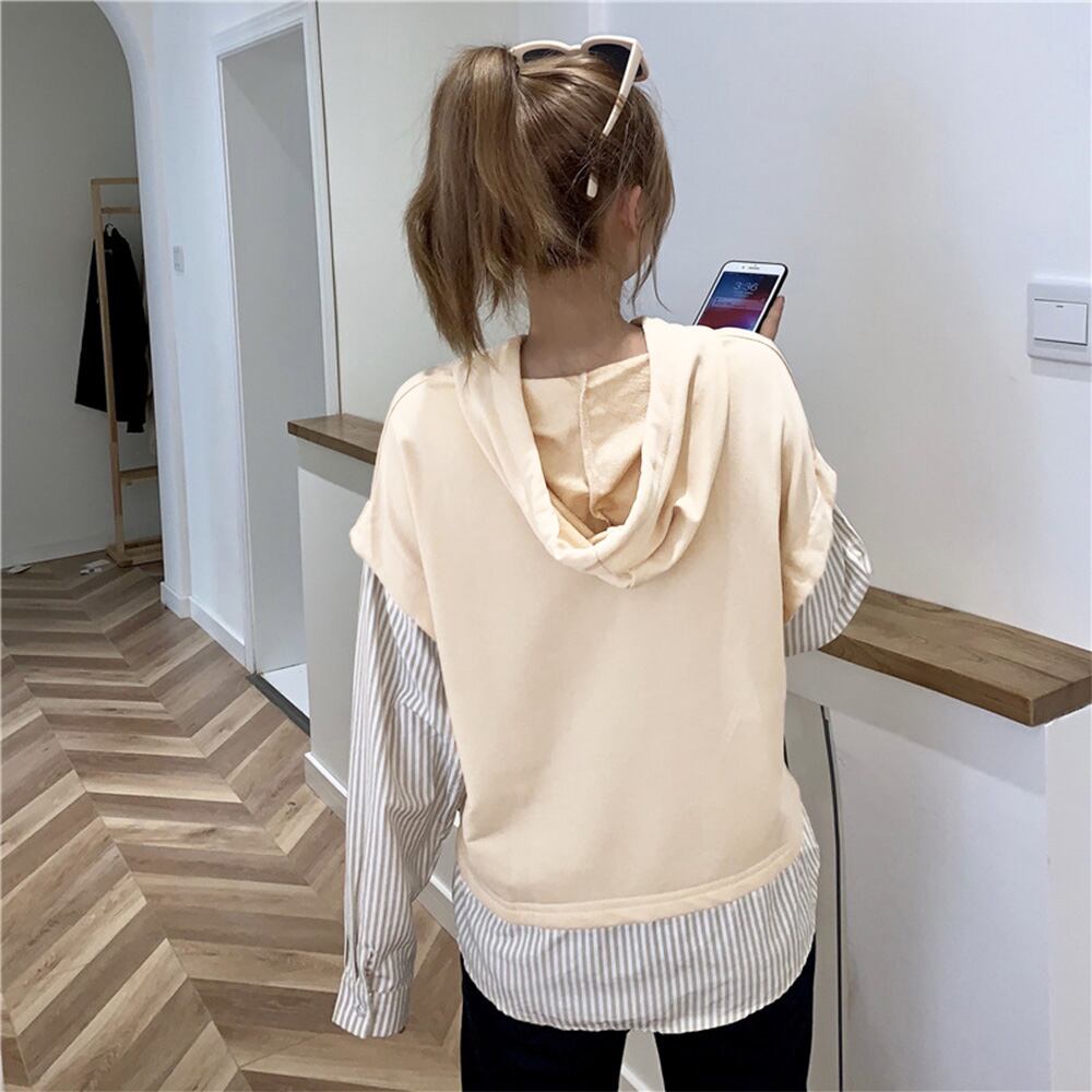 ドッキング トップス レディース 春秋 薄手パーカー 重ね着 シャツトレーナー