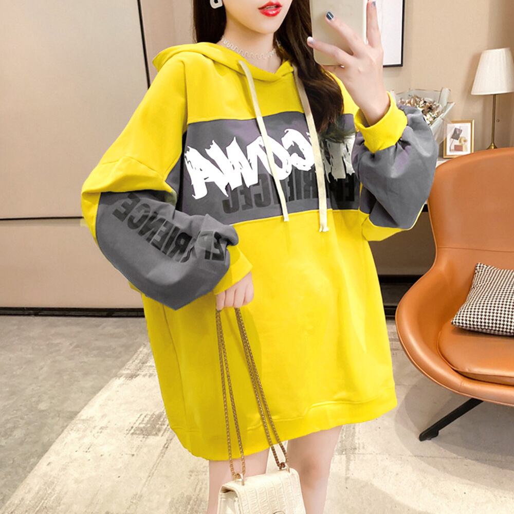 チュニックロンT フード付きトレーナー 薄手 プリント 着やせ ゆったり スウェットtシャツ カジュアル 韓国風