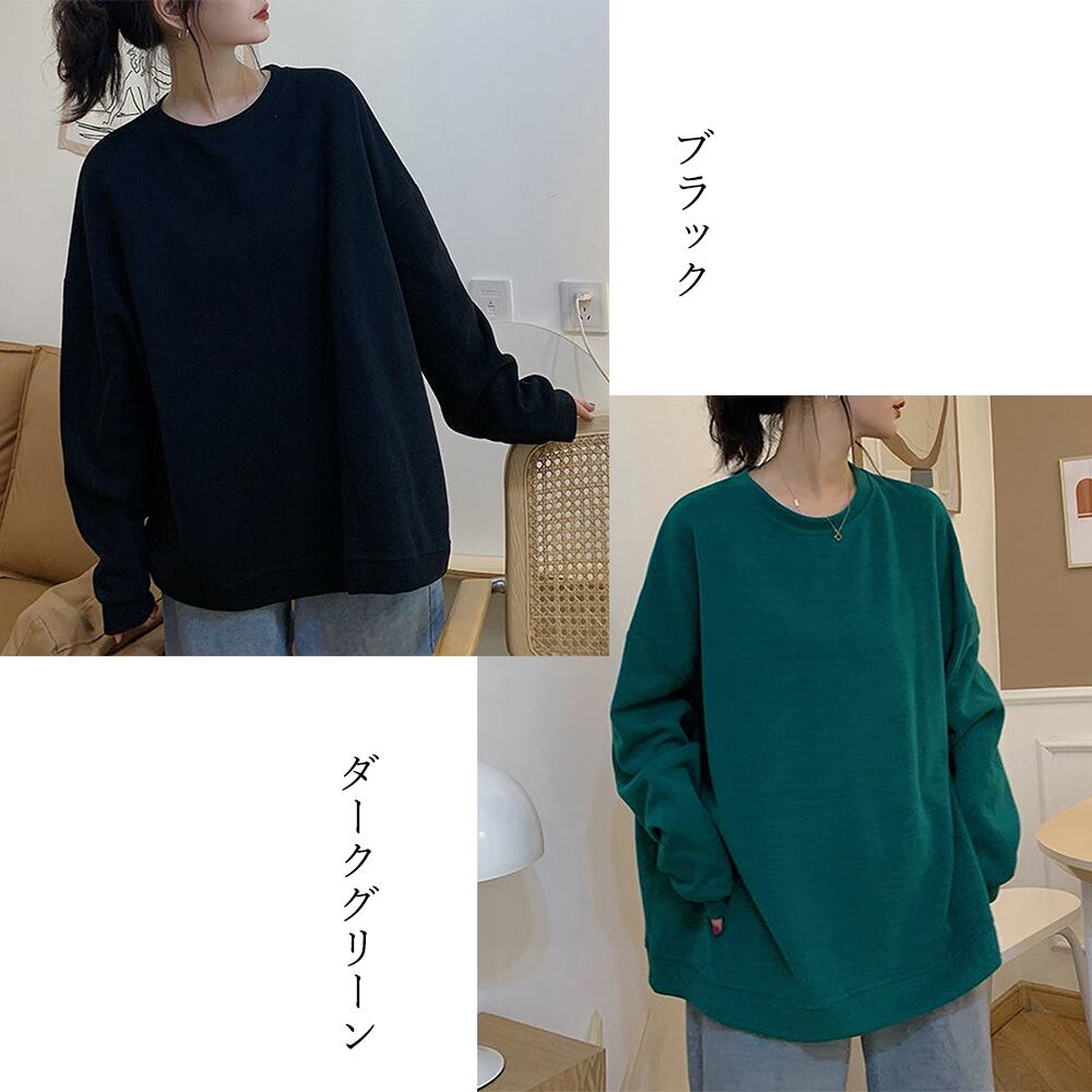 秋冬 プルオーバー クルーネック ゆったり チュニック ロンT 着やせ 無地 体型カバー トップス お洒落 カットソー