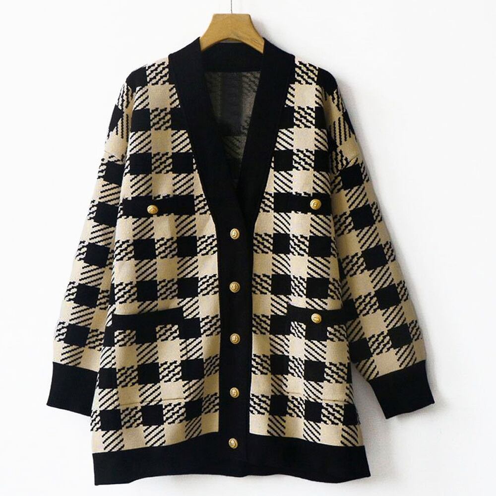 ロングシーズン取り入れることができるチェック柄ニットカーディガン