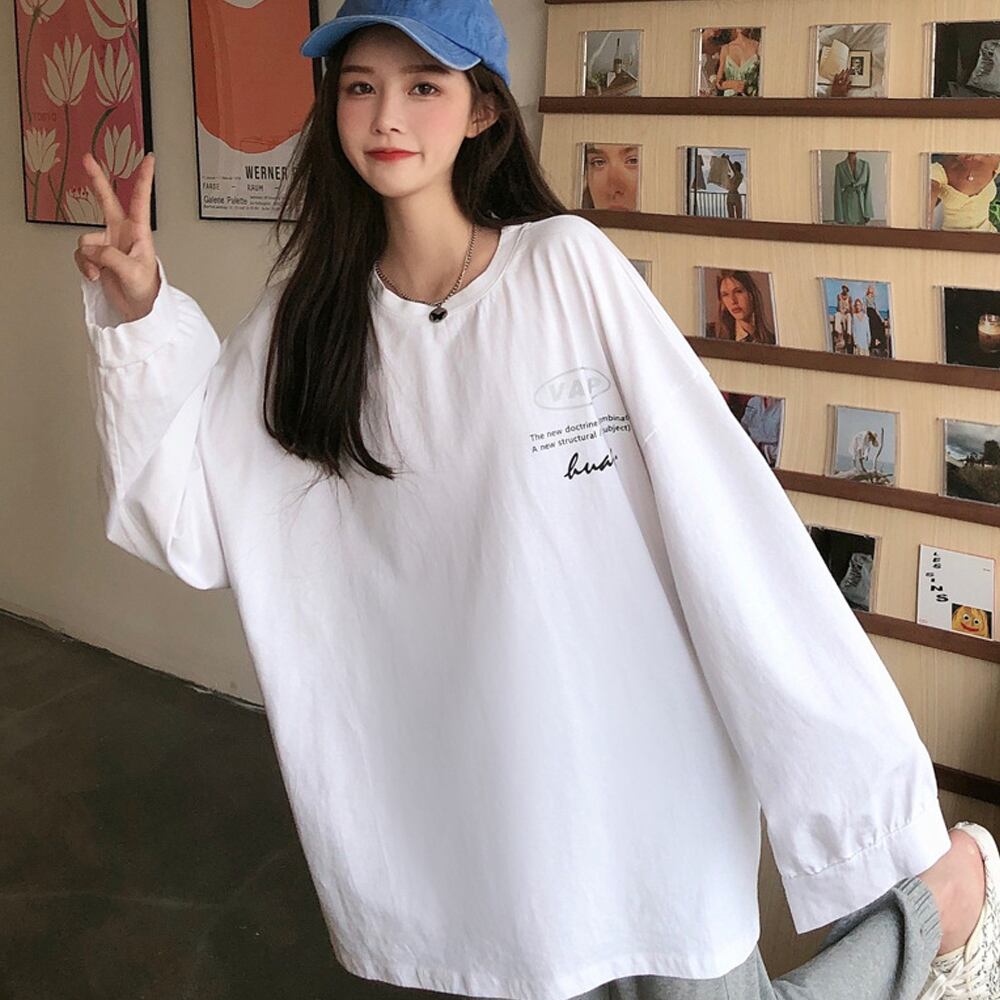 ロゴトップス Tシャツ ゆったり おしゃれ 韓国ファッション ロング丈 着やせ カットソー 体型カバー オーバーサイズ
