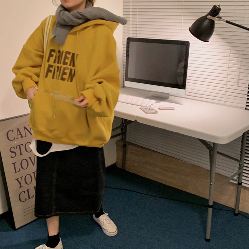 スウェットトレーナー フード付き 長袖 プルオーバー フロント 英字プリント 着やせ トップス 通学 韓国風 オルチャン