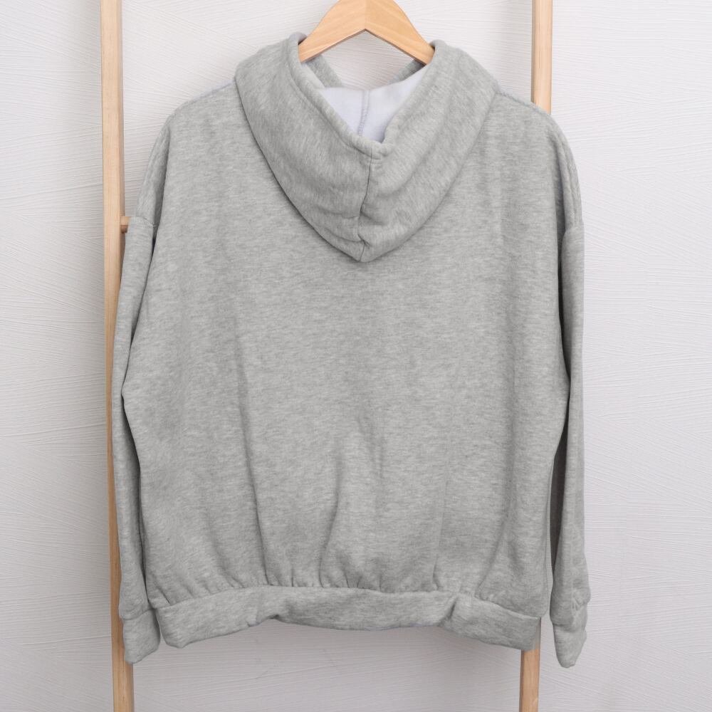 身幅と腕周りにゆとりをもたせた、オーバーサイズのパーカー。