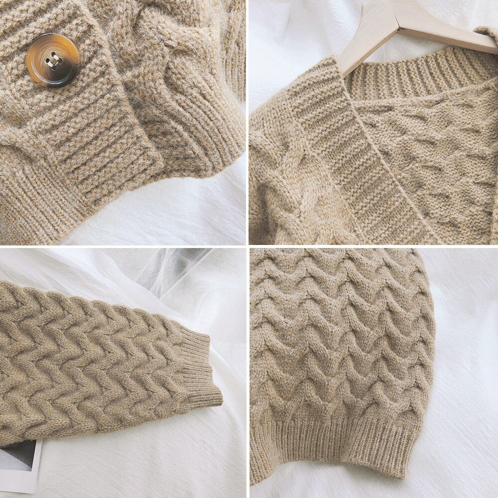 ニットカーディガン レトロ レディース 厚手 長袖 Vネック アウター 羽織り 秋冬 体型カバー 韓国風 ニットコート