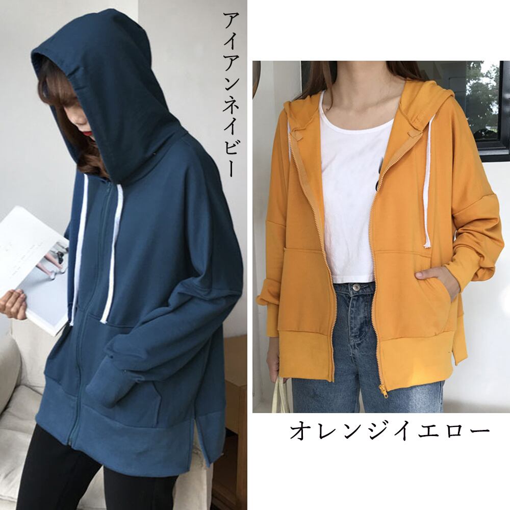 スウェット レディース フード付き スリット入り トップス ゆったり 重ね着 体型カバー 長袖