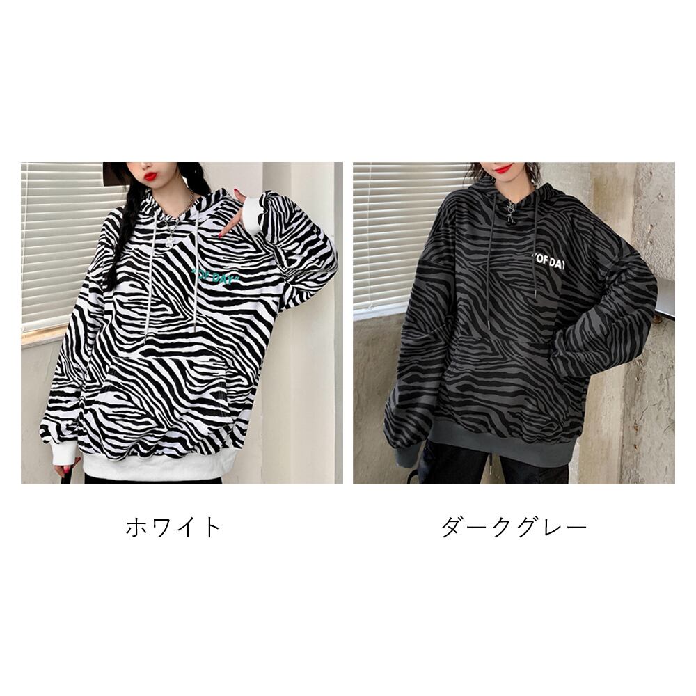 ゆったりパーカー 総柄 スウェット フード付きトップス