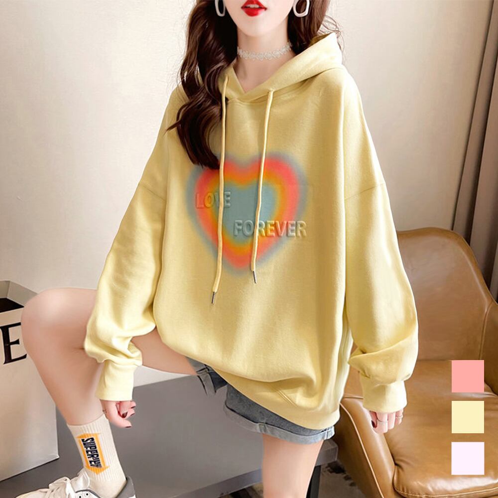 レディース エンボスロゴ フード付きスウェット 体型カバー チュニックロンT フーディー 韓国風 ロングトレーナー春秋冬