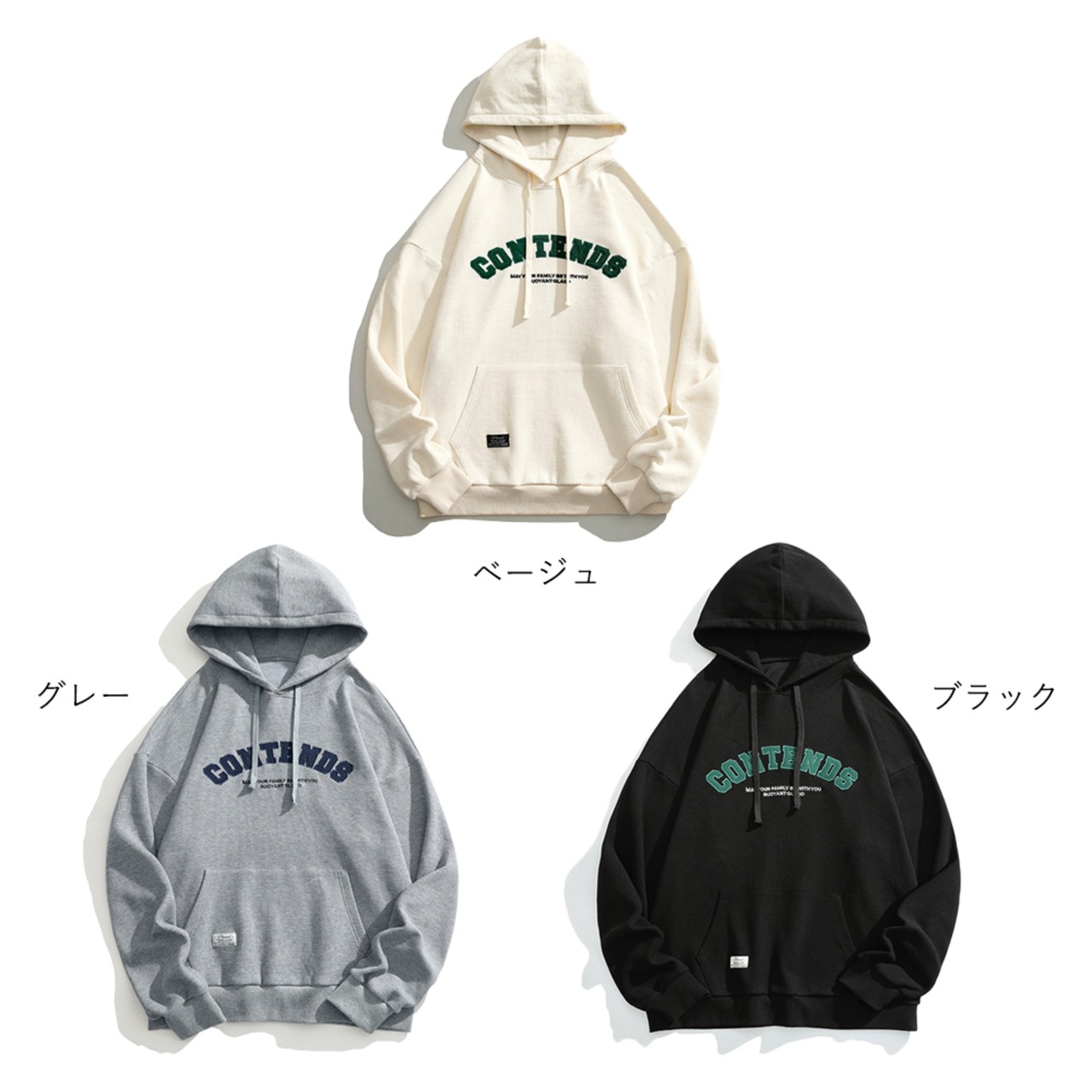英字ロゴと大きめのフロントポケットがアクセントになります