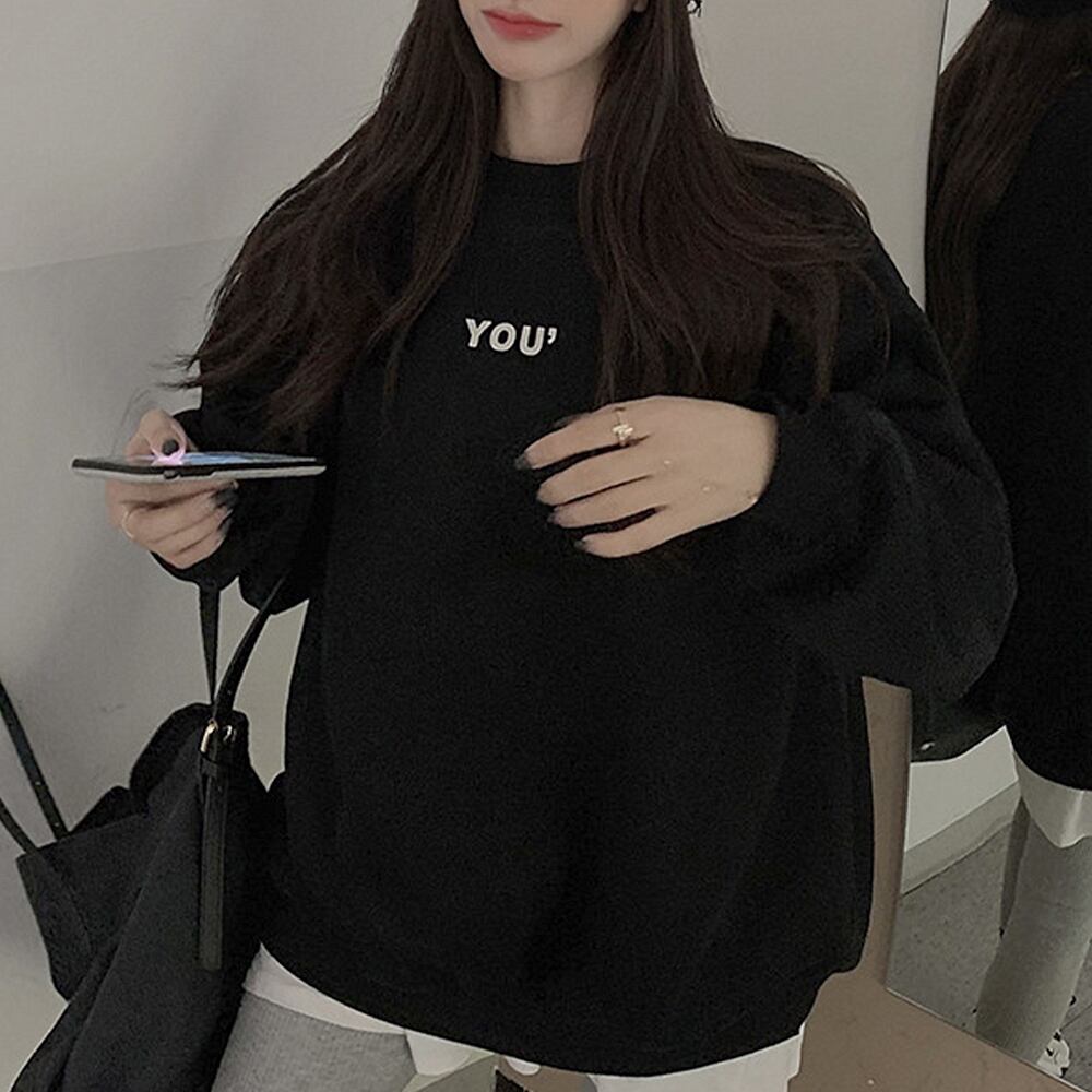 韓国風プルオーバー ゆったり カジュアル ロゴ 英字プリント スウェット オーバーサイズ 黒 グレー ピンク