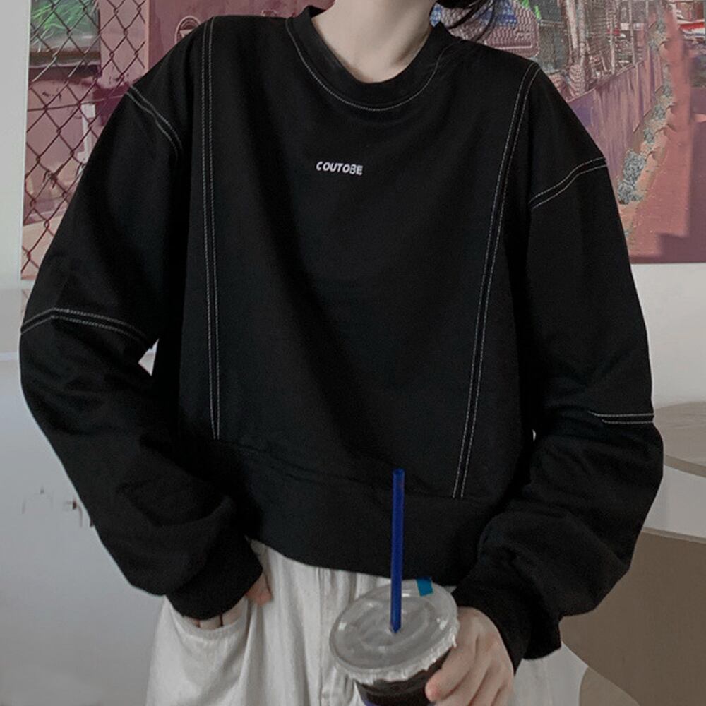 ショート丈 トップス 春秋冬 カットソー クルーネック Tシャツ 韓国風 シンプル