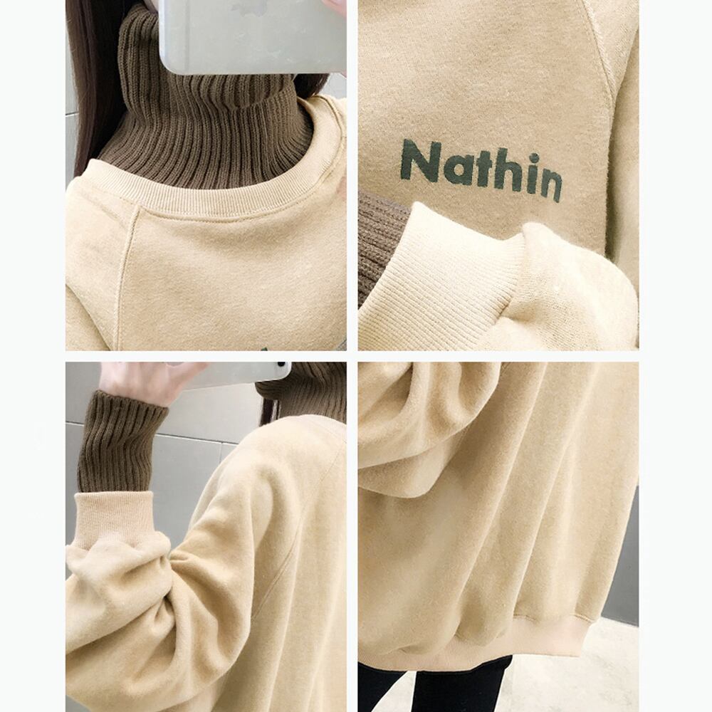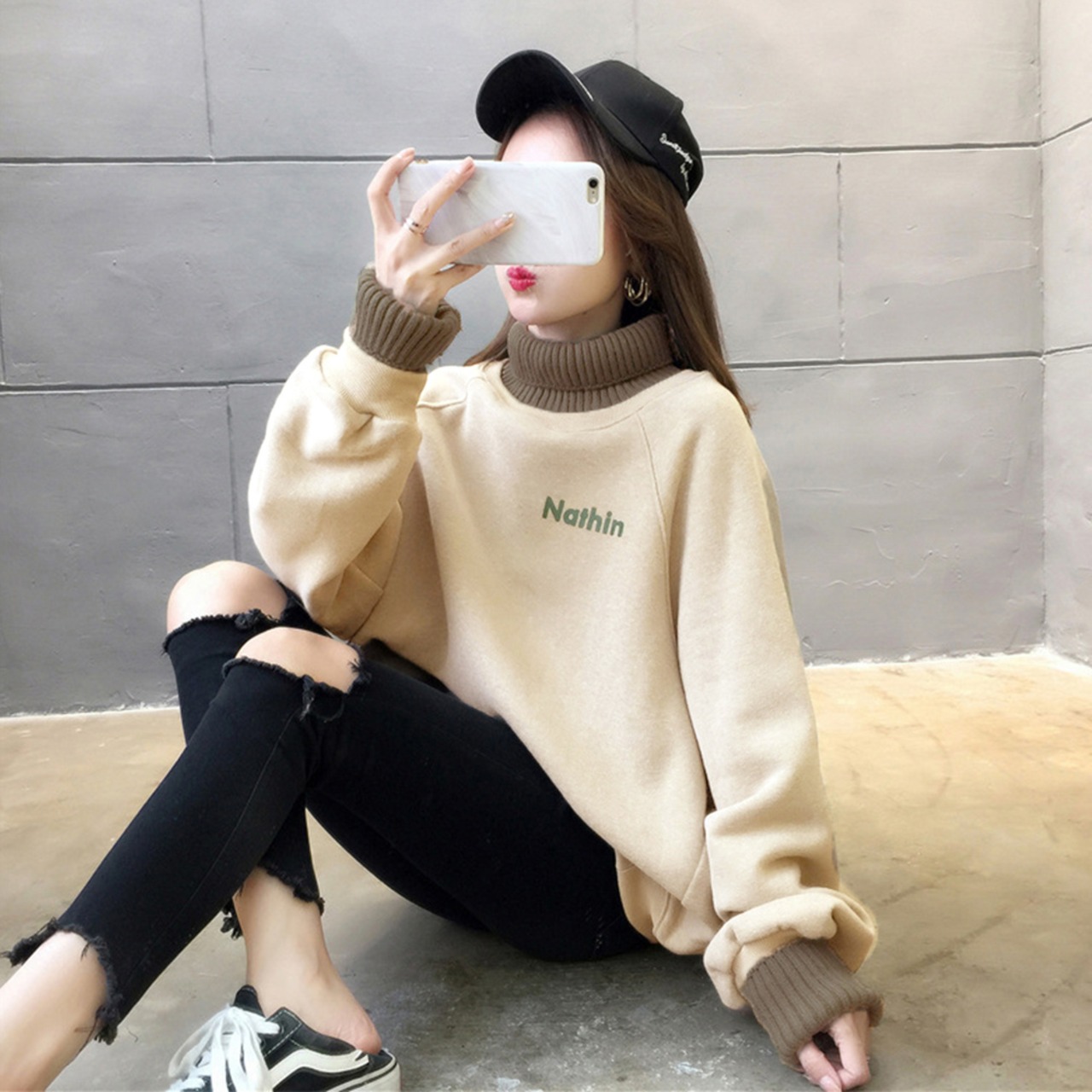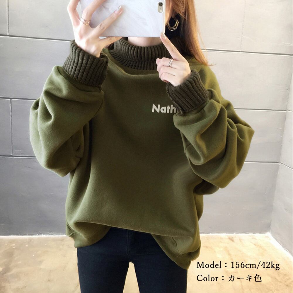 ゆったり スウェット オルチャン タートルネックトップス レイヤード風 ハイネック トレーナー 着やせ ボリューム袖