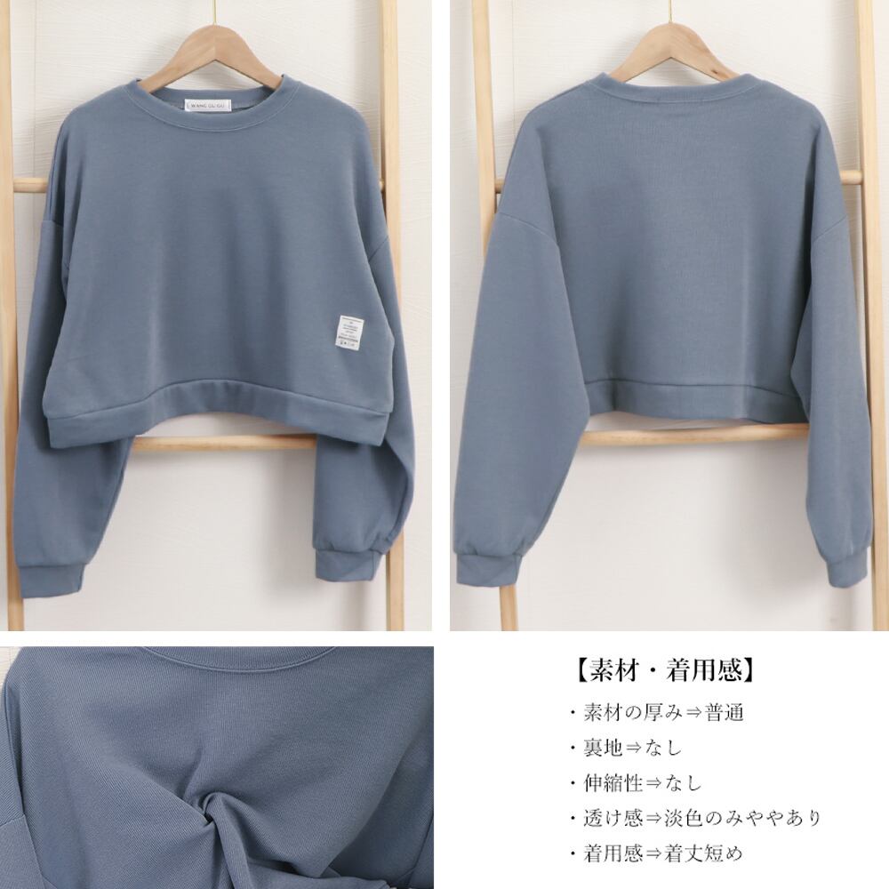 クロップド丈 トレーナー クルーネック 長袖 ショートトップス 春秋冬 カットソー 無地 カジュアルプルオーバー お洒落