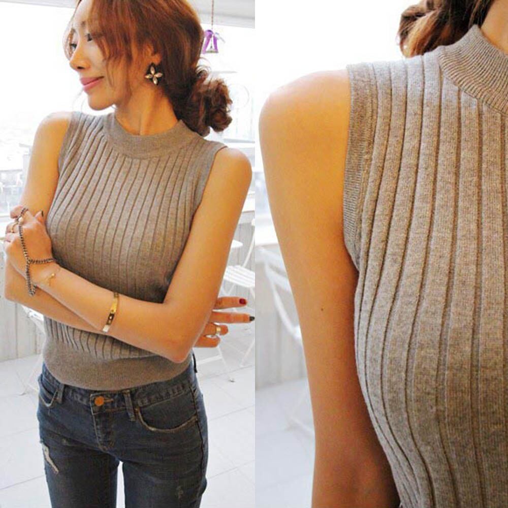 韓国風クルーネックニット ショート丈インナートップス ノースリーブ 重ね着ニットタンクトップ 着やせ 春夏秋冬ニットソー