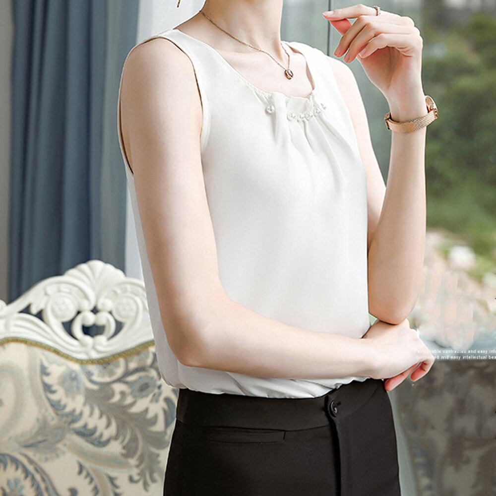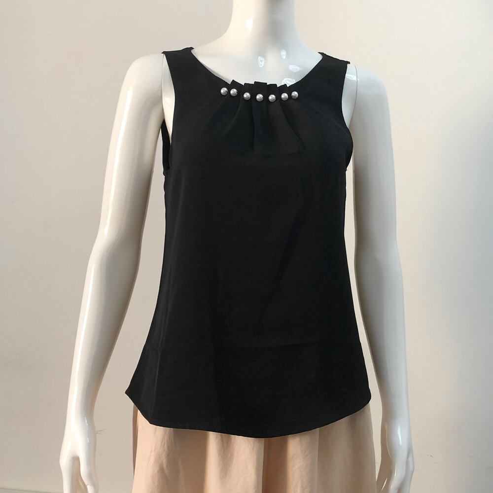 シフォン タンクトップ レデイース ノースリーブ パール付き ブラウス 重ね着