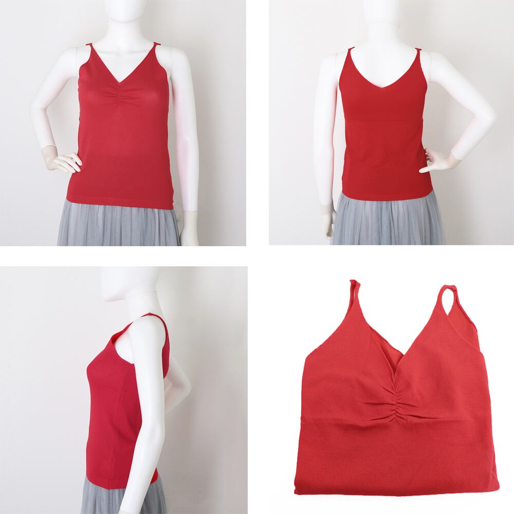タンクトップ Vネック レディース ノースリーブ トップス ギャザー