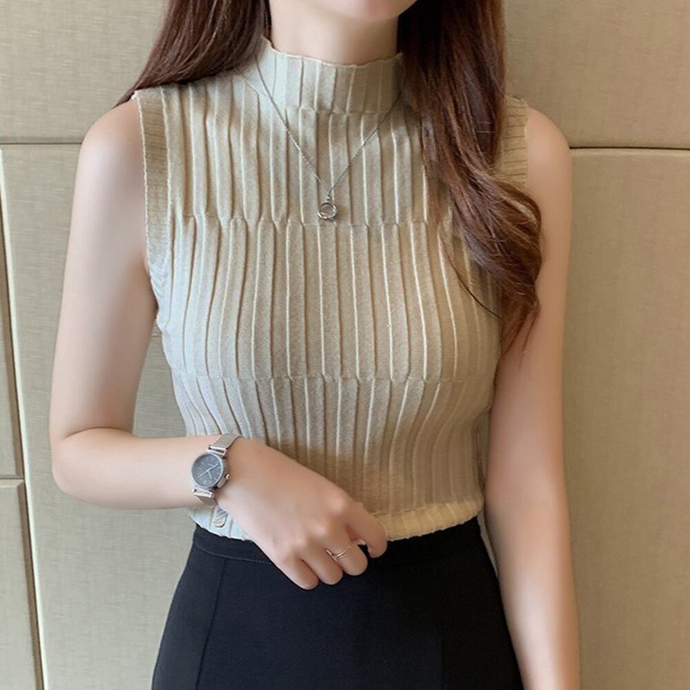 タートルネック ニット トップス レディース ショート丈 タンクトップ