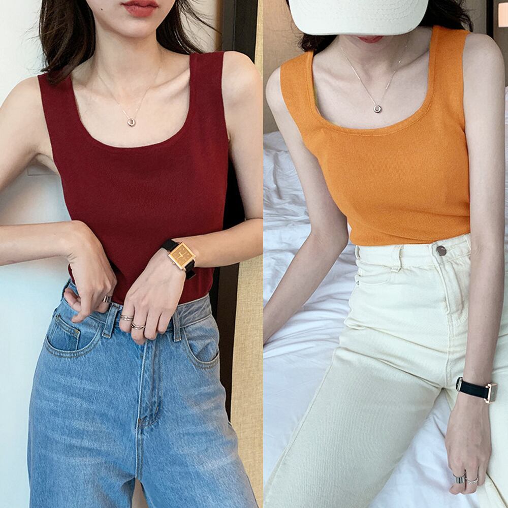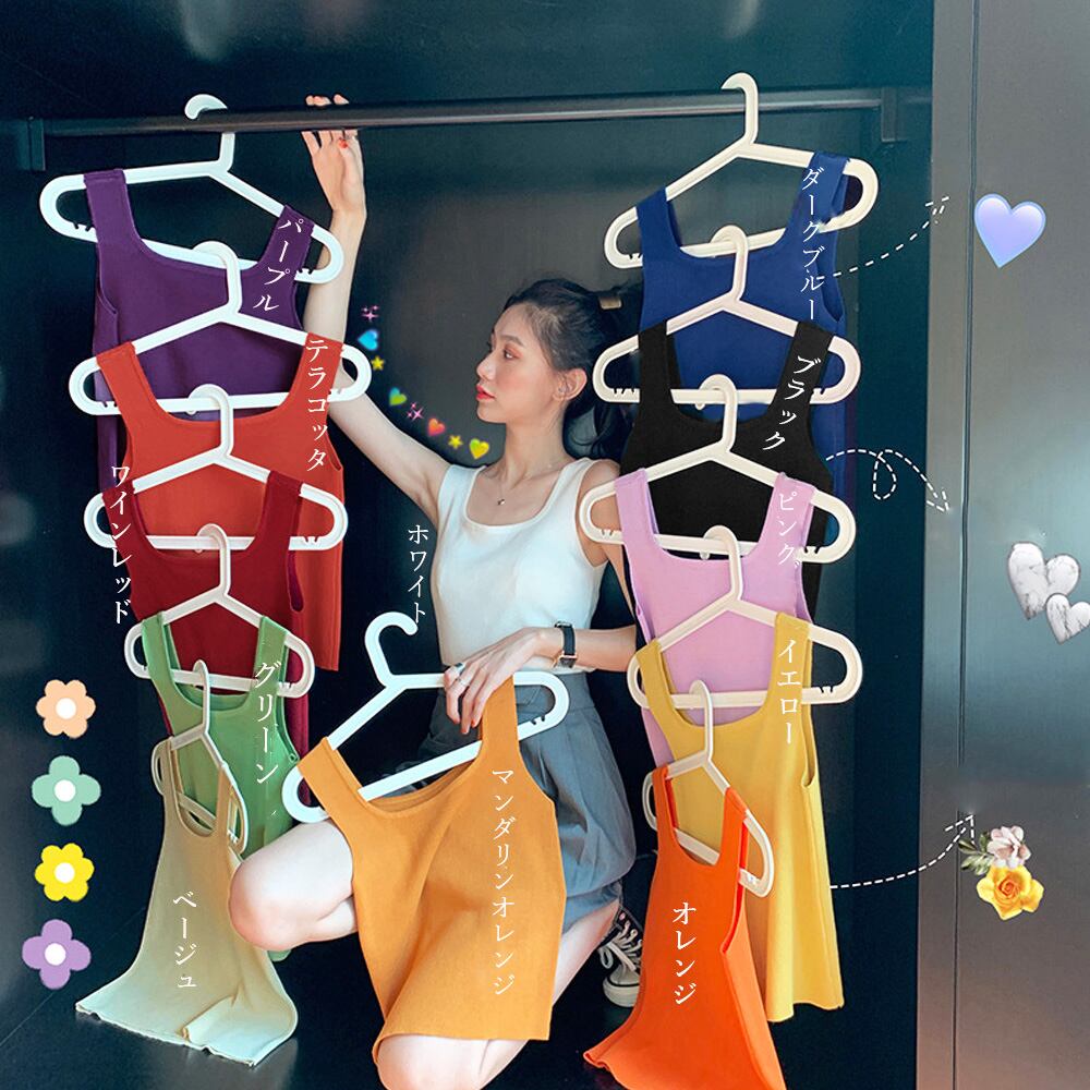 12色を展開し、カラーバリエーション豊富のUネックニットタンクトップ