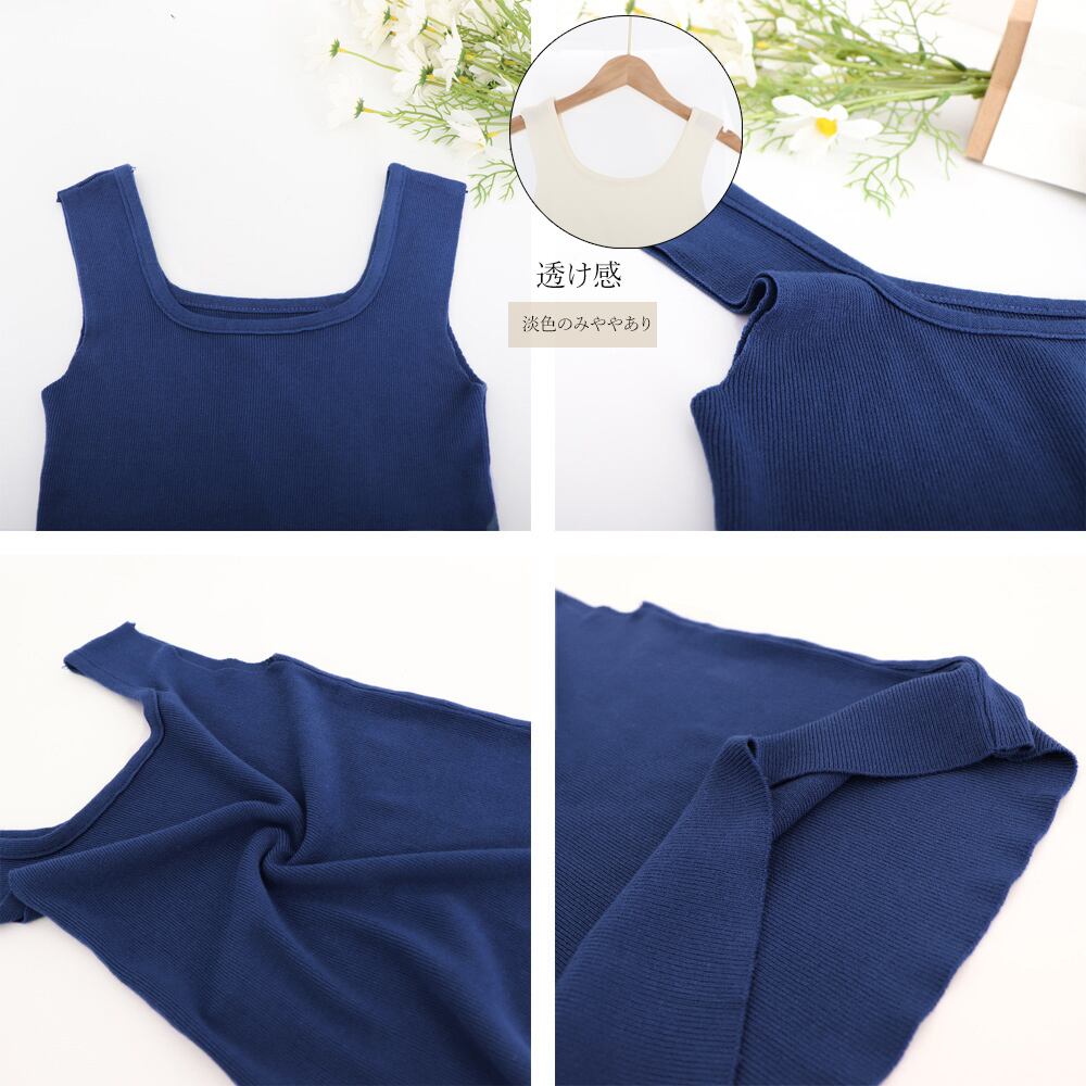 ノースリーブ ニットトップス レディース 薄手 インナートップス 着やせ カットソー スクエアネック