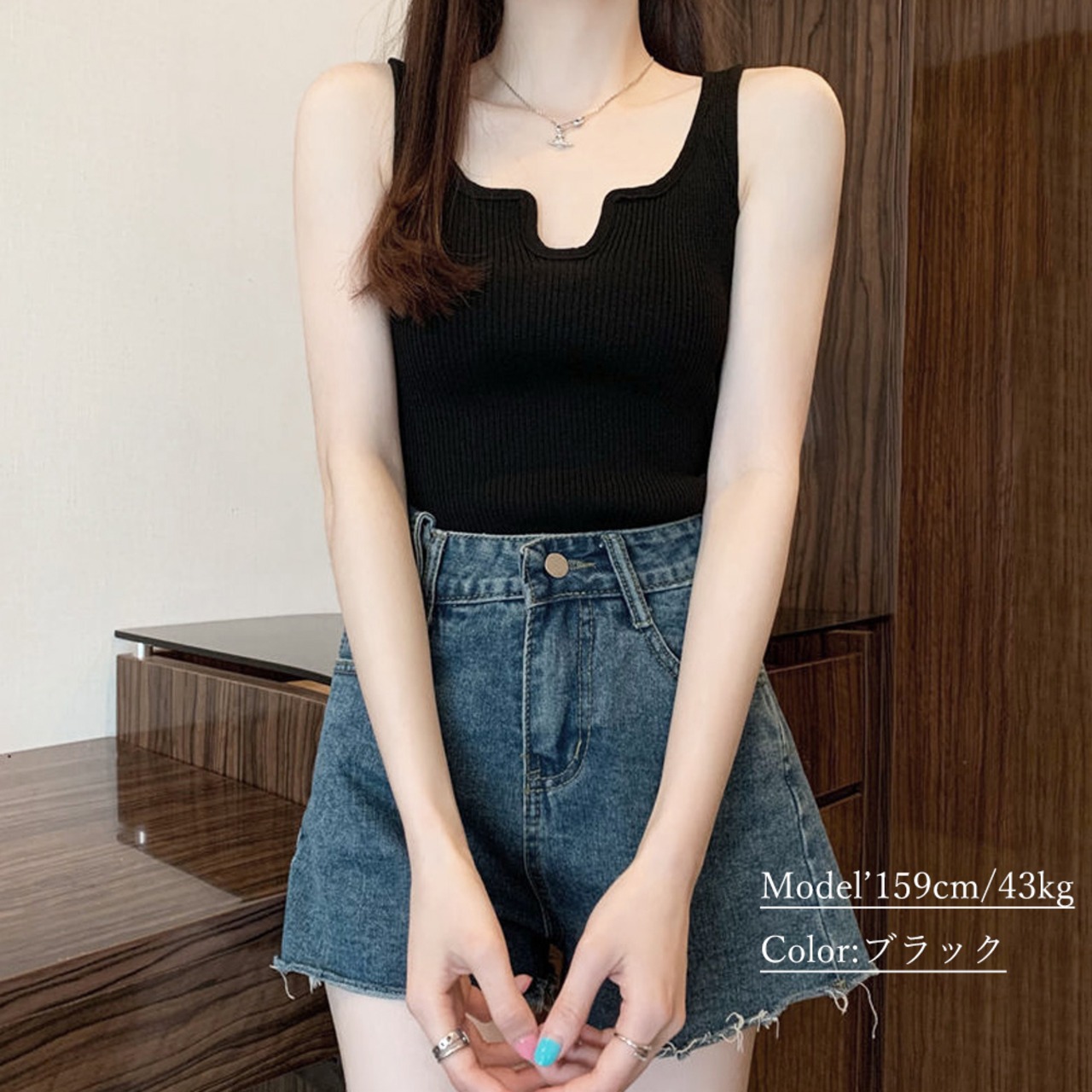Uネックデザインで首回りを綺麗に魅せられるタンクトップ