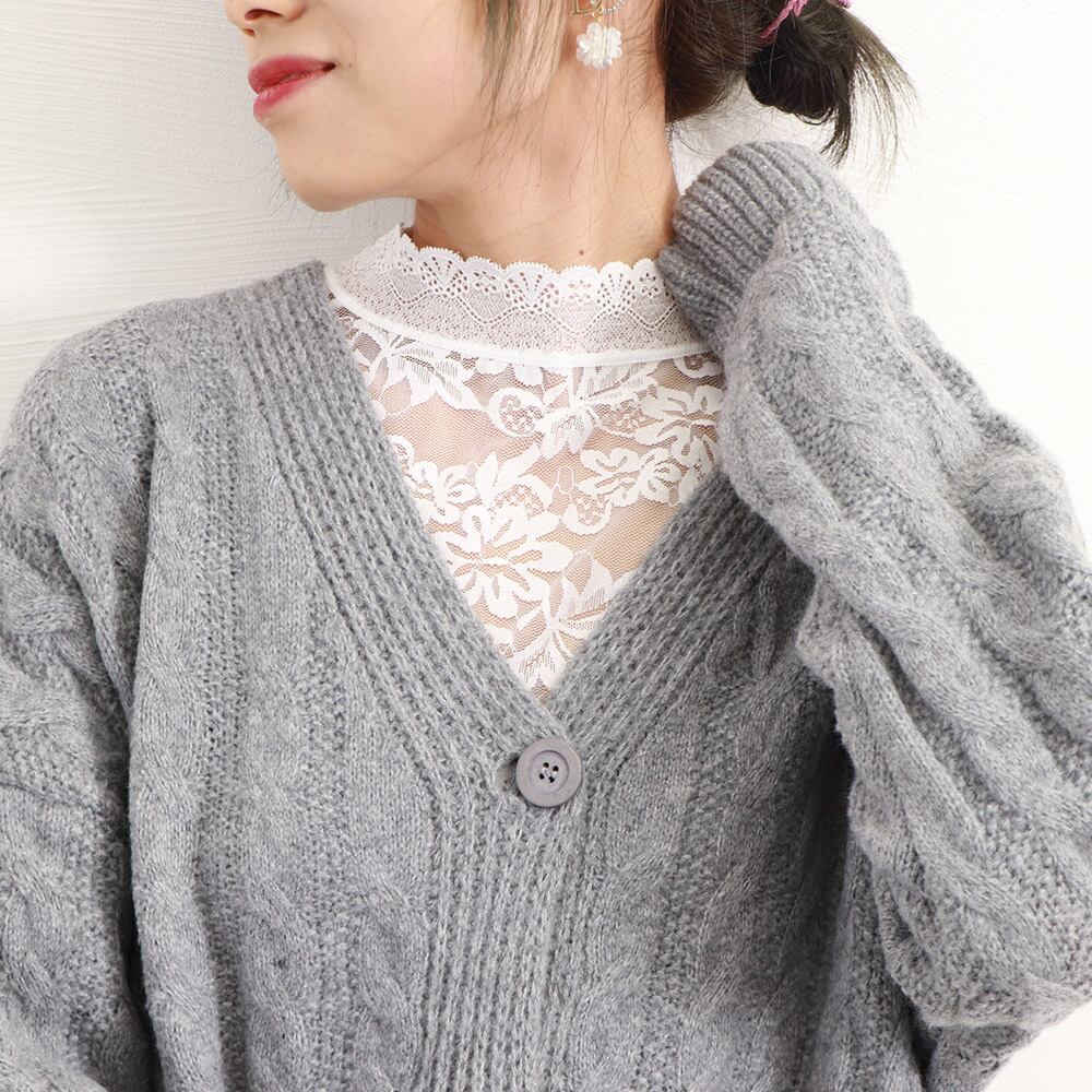 可愛いレースシャツ ハイネック 立ち襟 レイヤード つけ襟