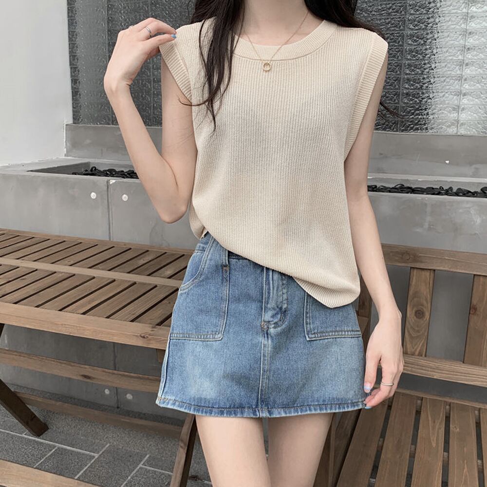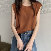 リブニット ノースリーブ ニットソー 通勤通学 重ね着 ラウンドネック 着回しオールシーズン プルオーバー 韓国風