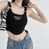 レディース 可愛い クロップド丈トップス へそ出し セクシーキャミソール ロゴ ダンス衣装 おしゃれ夏服ブラ付きインナー