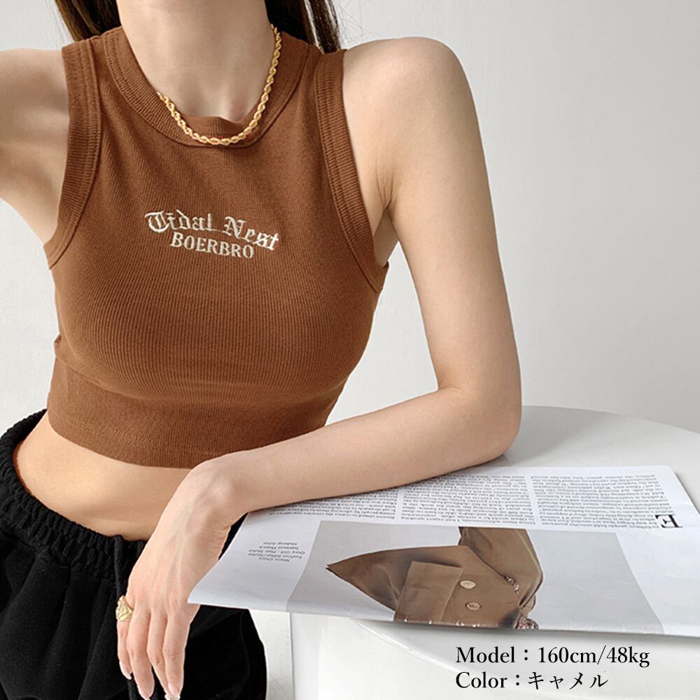 ロゴ刺しゅう へそ出し インナートップス 韓国ダンス衣装 おしゃれ ヒップホップ服 クロップド丈トップス セクシーキャミ