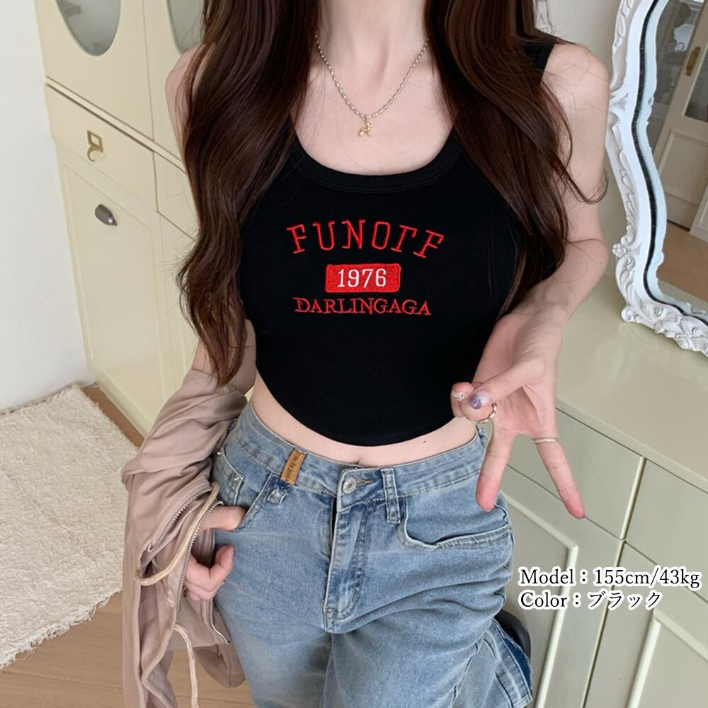 英字プリント 短丈タンクトップ 韓国ファッション ストリート ショート丈トップス ラウンドヘム ちびタンクトップセクシー