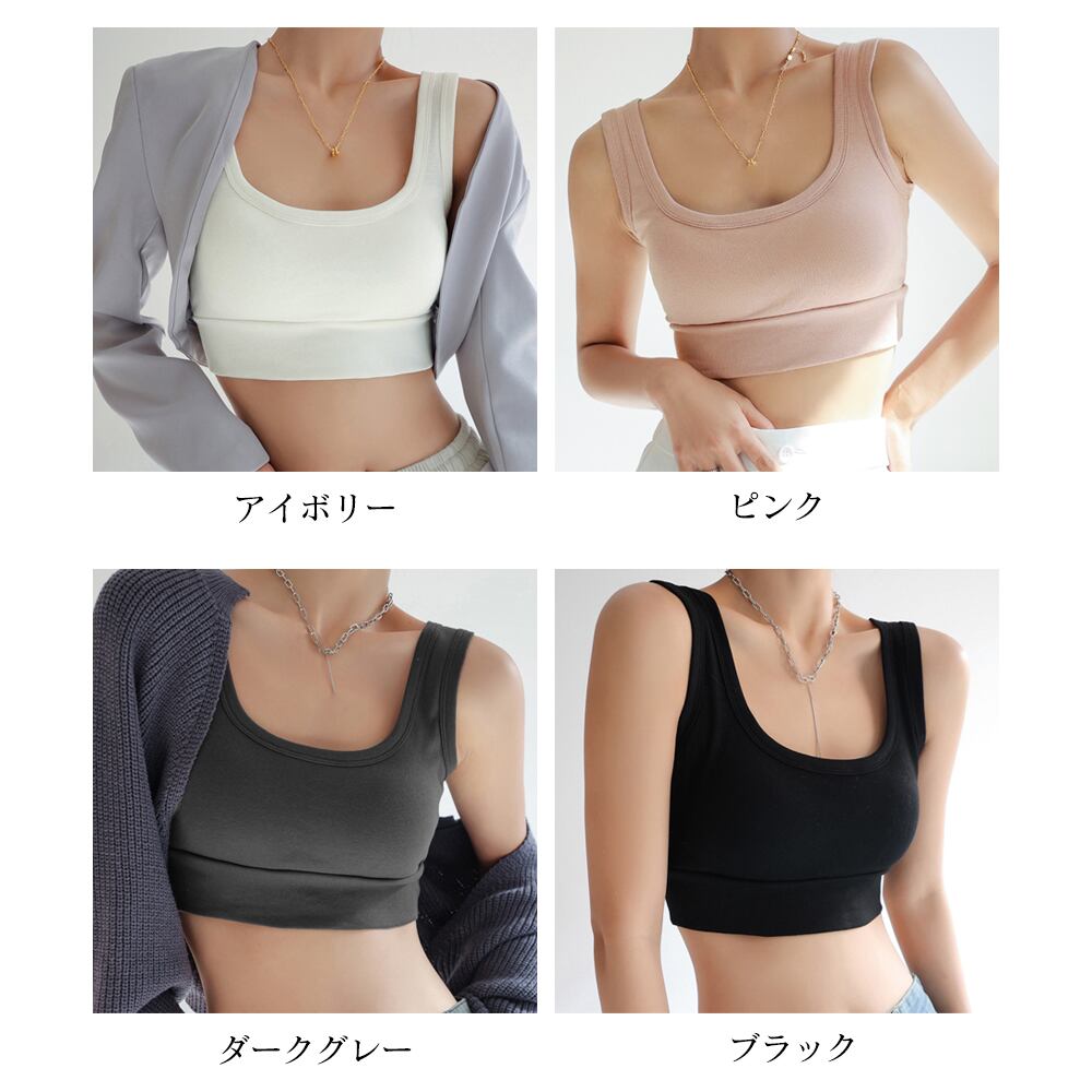 レディース インナートップス Uネック 無地 ノースリーブ ハーフトップ ブラジャー ノンワイヤー セクシー 運動着