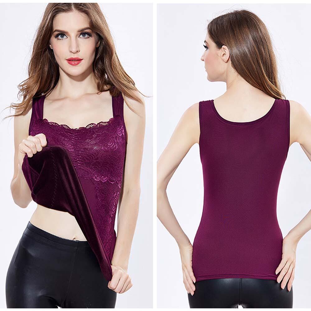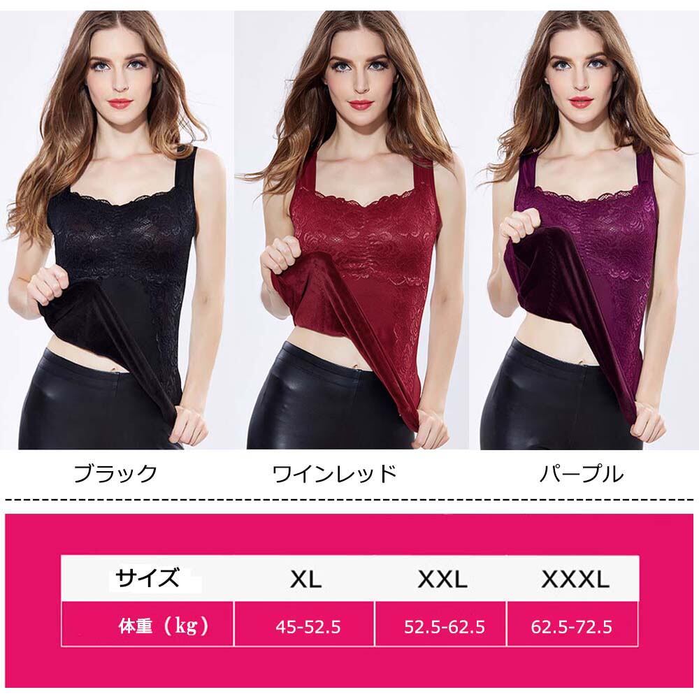 花柄レース インナー 裏起毛 パット付きキャミソール タンクトップ カップ付き