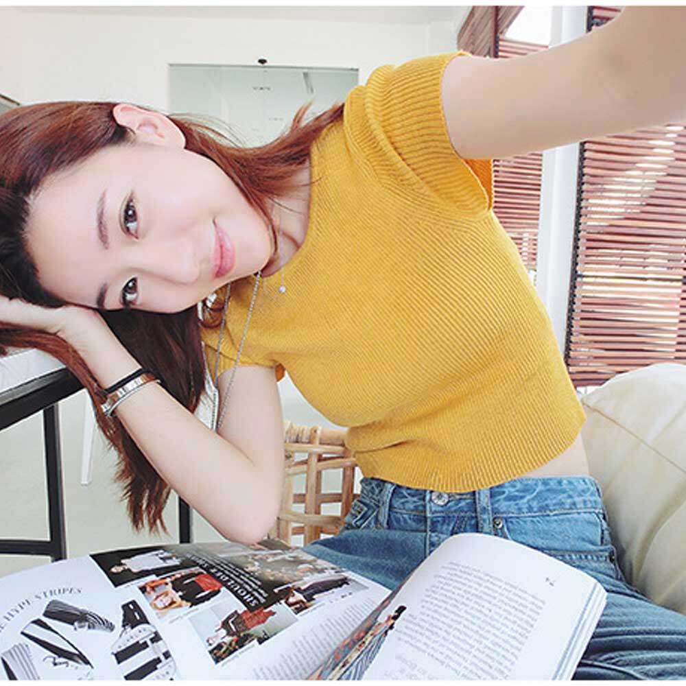 サマーニットトップス 春夏 ショート丈トップス 半袖 ニット カットソー