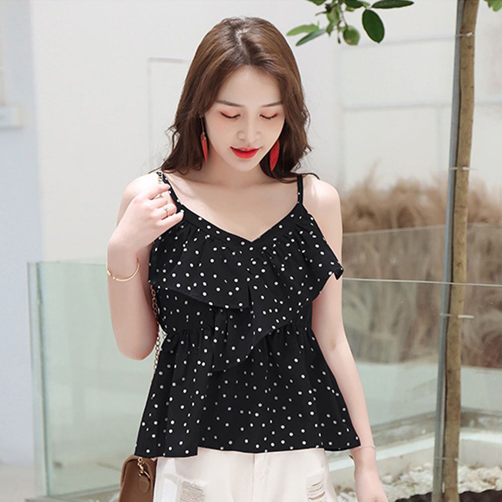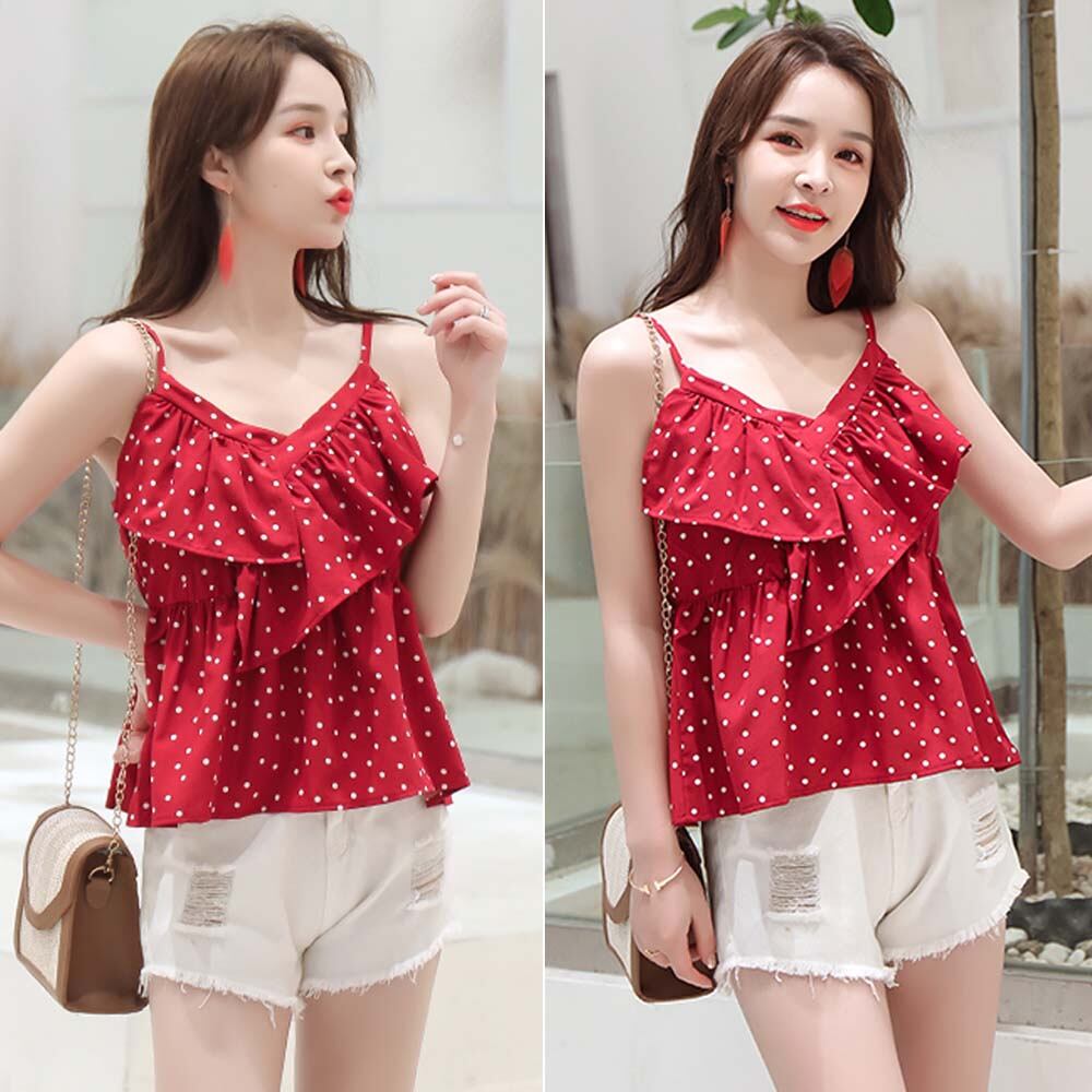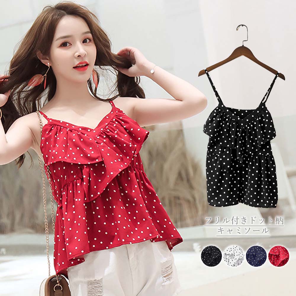 フリルキャミソール vネック 水玉 ドット柄 トップス レディース 春夏