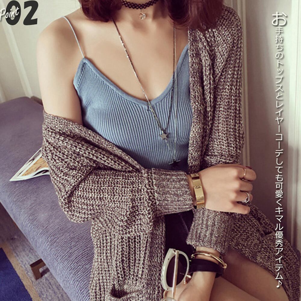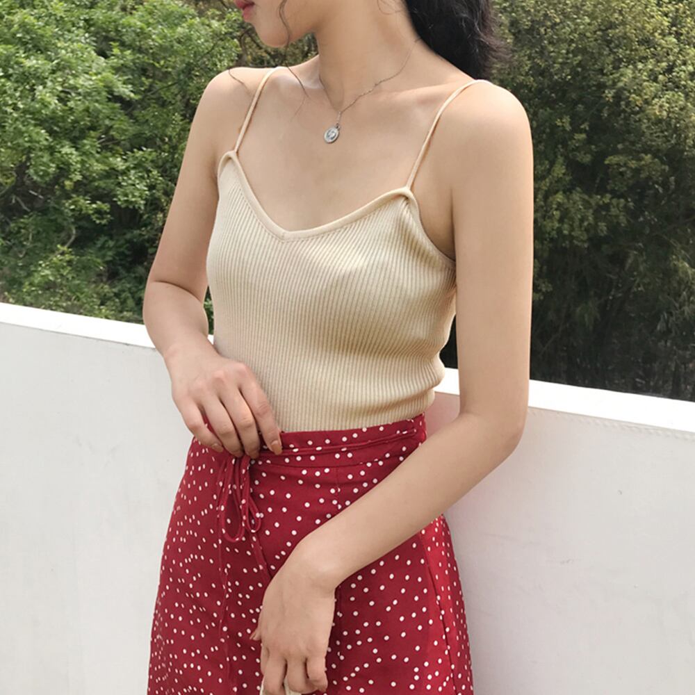 女性らしい細めの肩紐、カジュアルに着こなせるリブニットキャミソール