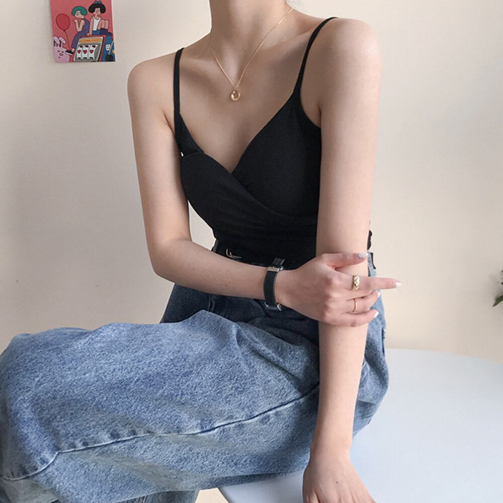 フロントクロスデザインのショート丈カップ付きブラキャミソール