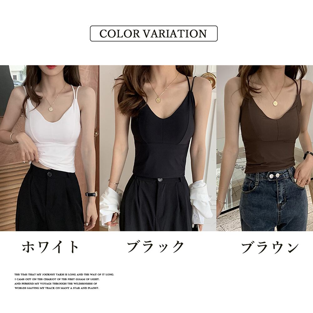 おしゃれ ブラトップ タンクトップ 黒 ブラック ホワイト シンプル 無地 レイヤード 着やせ トップス