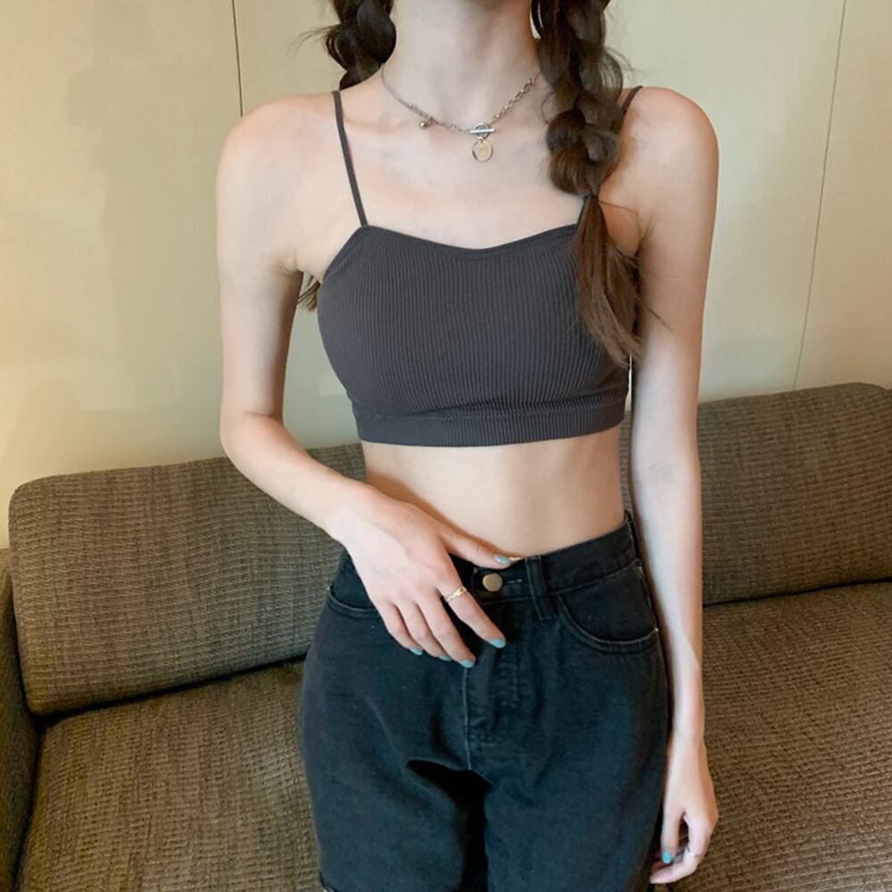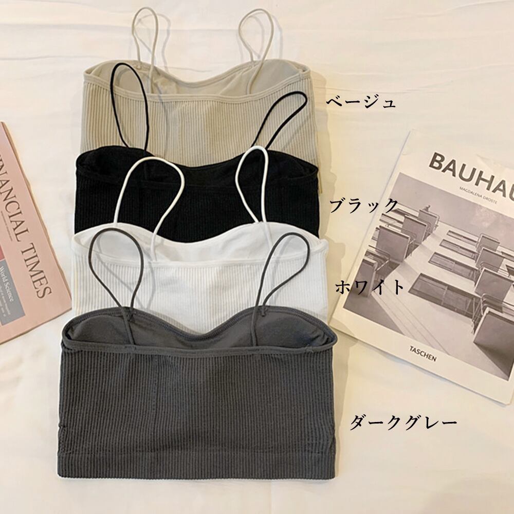 リブキャミソール白 下着ノースリーブ秋 韓国ファッション黒